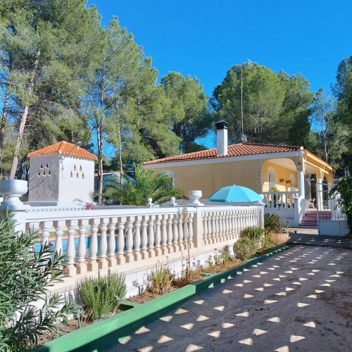 Magnificent country property with a double house, a guest house, own well, and stunning views: This property includes a large villa made from natural stone, consisting of two adjoining two-storey apartments, mirroring each other, each with a large living room with a fireplace and an open kitchen, a bathroom, and 3 bedrooms upstairs. Extra feature is an independent guest house with a large dining room.One of the standout features of this estate is its unique construction, as the houses are clad with local natural stone. This traditional craftsmanship not only gives the property a distinctive character but also ensures extraordinary durability, built to last a lifetime.Outside, the estate features a swimming pool with filtration system, a double garage, and a barbecue area. The property is equipped with solar panels for electricity plus a gasoline backup generator. It also benefits from its own natural spring water well, providing excellent autonomy.The land comprises 8,500 m², planted with fruit trees and olive trees in production. Surrounded by mountains and nature, the property enjoys beautiful panoramic views and exceptional peace and privacy. Protected area of Monte Arabí is in a hiking distance.A unique opportunity for those seeking nature, independence, traditional craftsmanship, and an estate with multiple possibilities. It is ideal for a multi-generational family residence, holiday home, or a rural project.About the area: Yecla is a charming and historic town of app. 35000 inhabitants, located in the region of Murcia. It is renowned for its award-winning wines, historical landmarks, and vibrant local culture. The surrounding natural landscapes of scenic mountains, vineyards and almond groves provide opportunities for outdoor activities, while the town itself offers all necessary services, including hospital, schools, shops, restaurants, and other services. With a friendly local community, lively markets, excellent gastronomy, and easy access to nature, Yecla is an ideal location for those seeking authentic Spanish lifestyle - just about an hour from the coast and Alicante airport.About us: We have a large portfolio of properties in the Costa Blanca and Costa Calida areas, specialising in country properties, villas, fincas, building plots and design and build options in the Alicante and Murcia regions with a particular emphasis on Yecla, Novelda, Elda, Monovar, Pinoso, Sax, Villena, Aspe, Fortuna, Jumilla, Abanilla, and many more surrounding areas. We have been established since 2004 and have decades of experience between the team which we bring to bear to help you find and secure your new dream home. We help you every step of the way to make sure your purchase in Spain is safe and hassle free. We are not here to sell you a property, we are here to help you realise your dream and find what is right for you. With us you are in the safest hands. Contact us now to have a no obligation chat about how you too can realise your dreams.