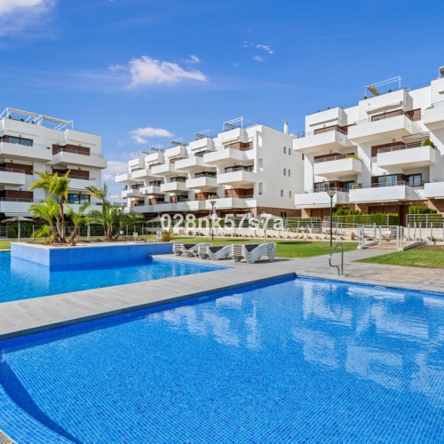 This bright and spacious first-floor apartment offers 97 m² of comfortable living in the desirable area of Aguamarina, Orihuela Costa. It features two bedrooms, a generous living and dining area, and a large terrace that fills the home with natural light. The property is sold fully furnished and equipped, including two newly installed silent and energy-efficient air conditioning units with smart connectivity. A private underground parking space is included, with lift access directly to the apartment level. The gated community provides two swimming pools—adult and children's—as well as a jacuzzi area. Community fees include internet and concierge service. Registered as a tourist apartment, it is suitable for holiday rental, seasonal stays, or permanent living, making it an excellent lifestyle or investment opportunity.