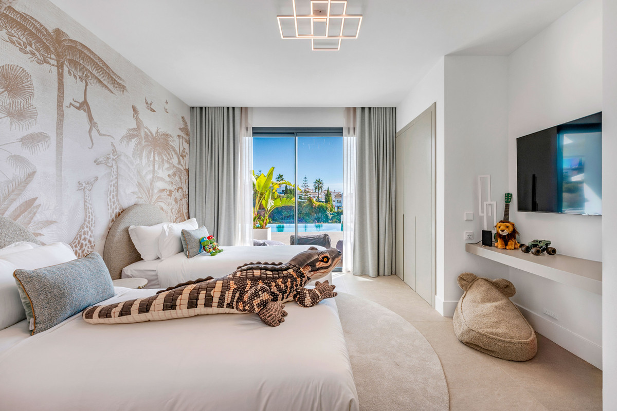 A private driveway leads to the top-floor entrance, where sweeping views of the Mediterranean and La Resina Golf Course immediately set the tone. Clean architectural lines, abundant natural light, and striking geometry create a stunning first impression.