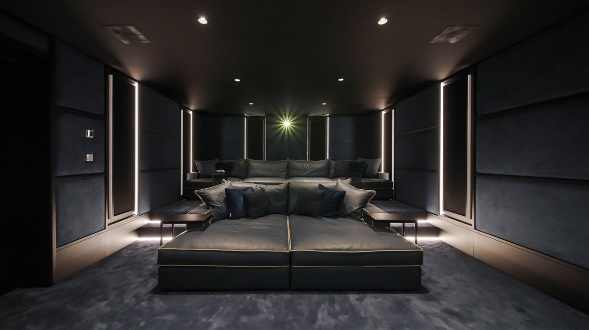 A luxury wellness and entertainment hub: cinema room, glass-fronted wine cellar, full gym, sauna, steam room, and cold plunge. A games room with designer bar, a cozy second living area, and two garden-level en-suite bedrooms create the perfect retreat. Additional features include a panic room, storage, machine room, and full underfloor heating.