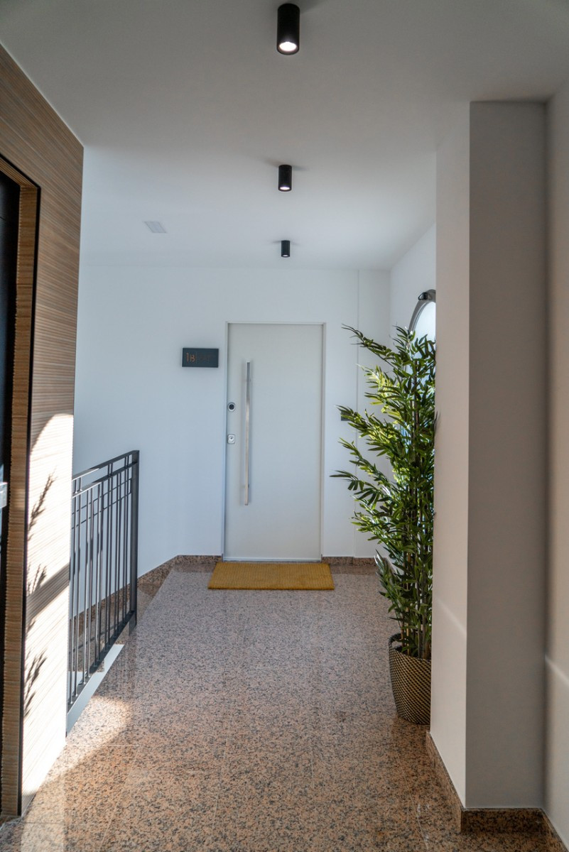 The interior stands out for its elegant and functional style: a fully equipped Italian designer kitchen with appliances, three bedrooms and three full bathrooms (one en suite), as well as ducted air conditioning and blue heat heating throughout. High-end materials , such as Schüco windows and a security door with code access , guarantee maximum quality and comfort.\n