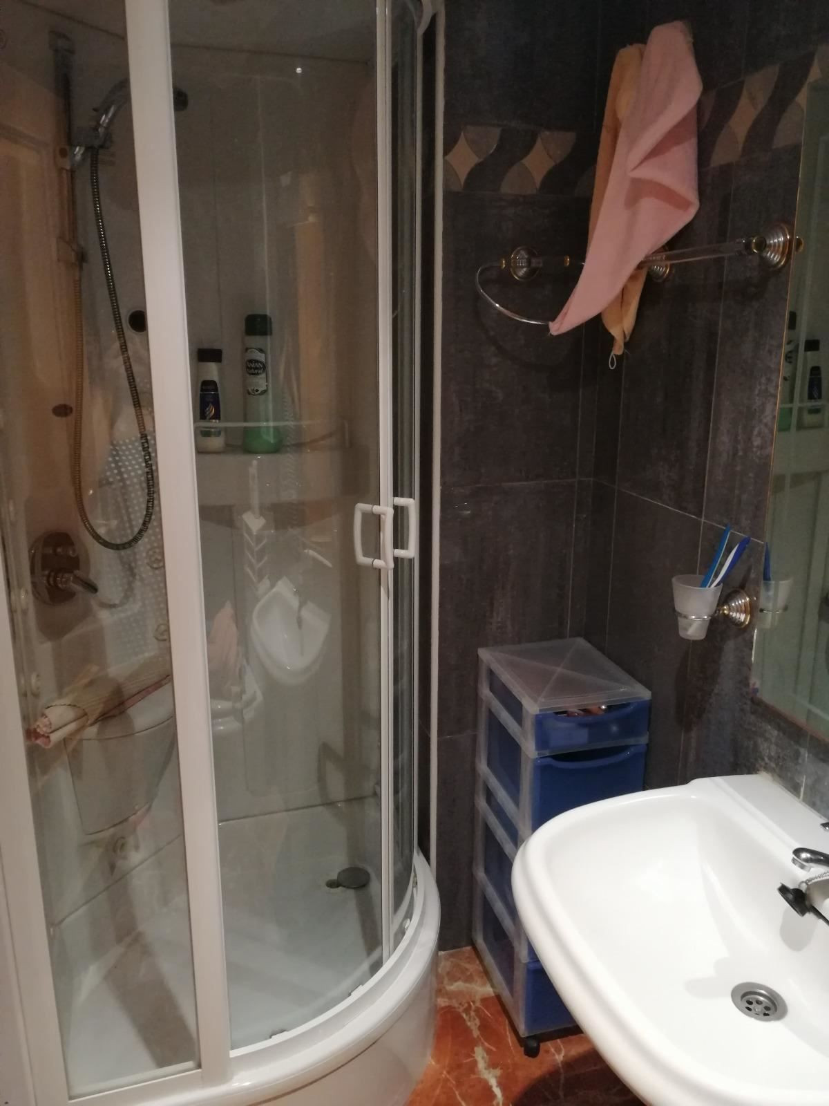 The apartment offers three spacious bedrooms with practical built-in wardrobes, two fresh bathrooms and a bright living room that opens onto a balcony - perfect for morning coffee or a moment of rest in the shade after a day at the beach. The interior is characterized by cool marble floors and air conditioning that keeps the temperature comfortable all year round.