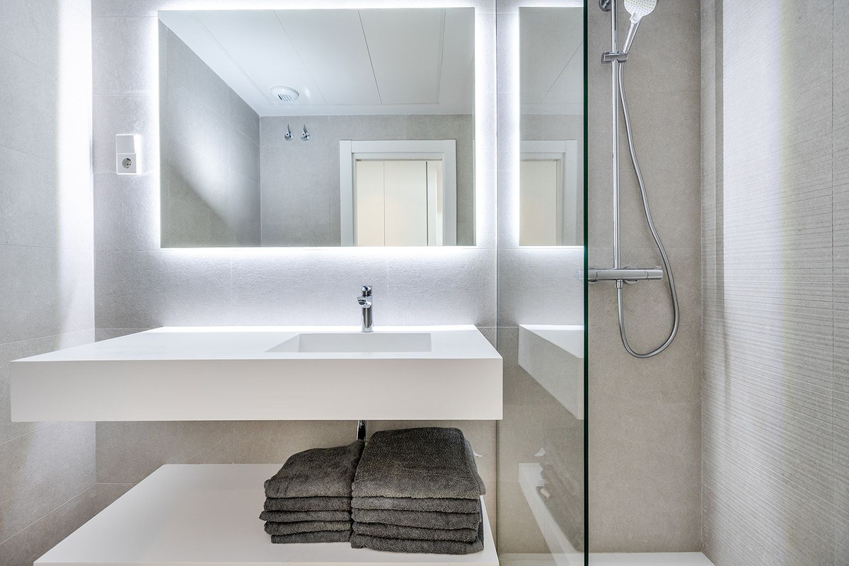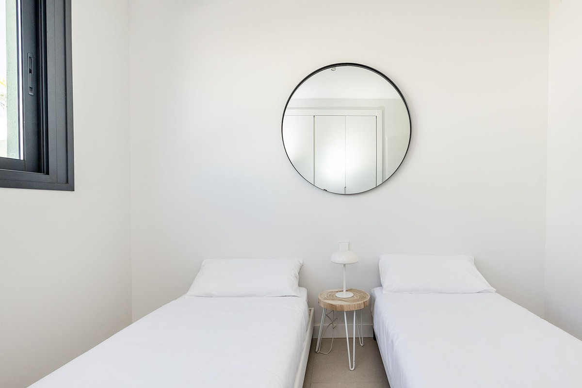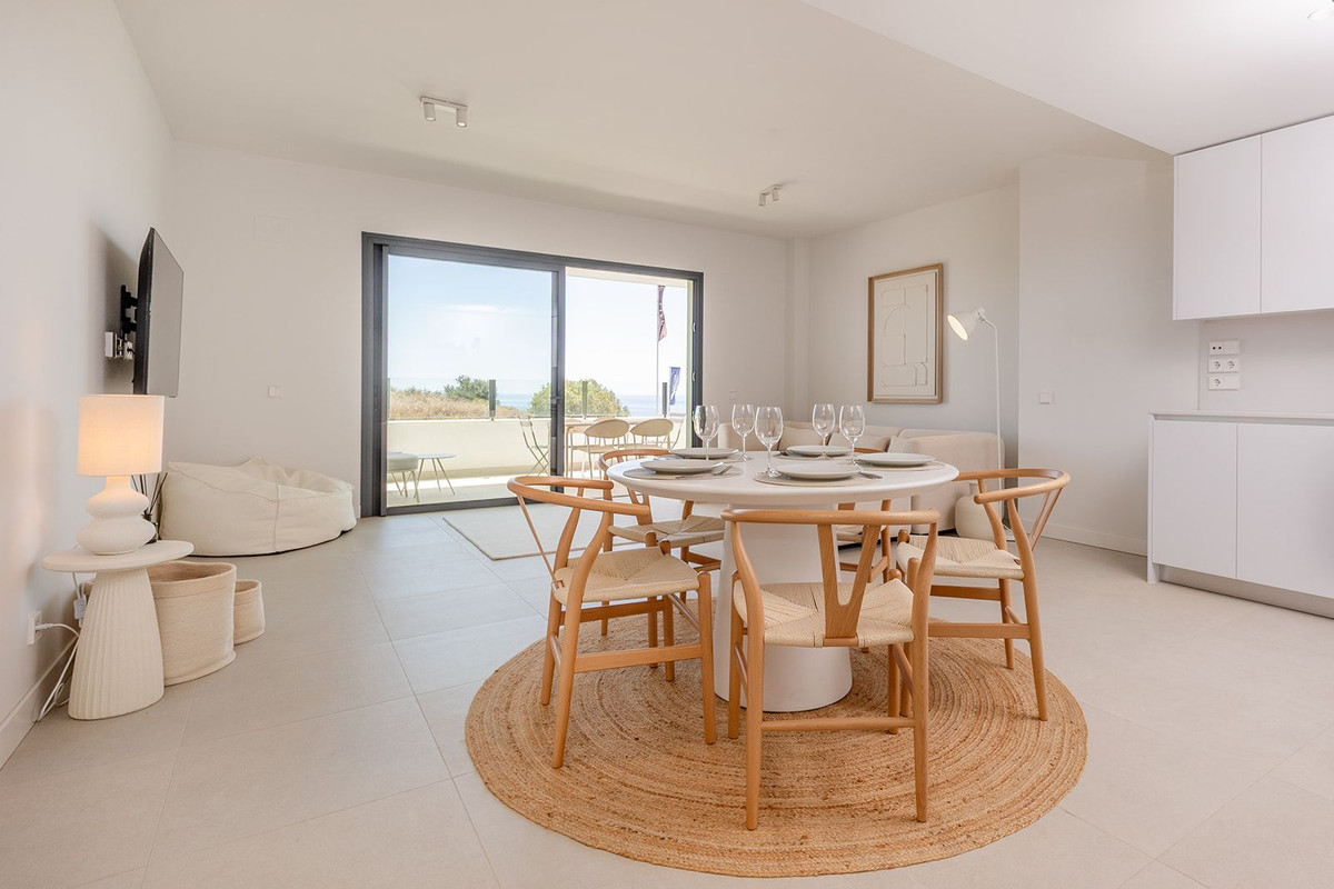 The master bedroom boasts an en-suite bathroom and direct access to the terrace with sea views. Two additional bedrooms and a second bathroom make this home perfect for families or as a high-end rental investment.
