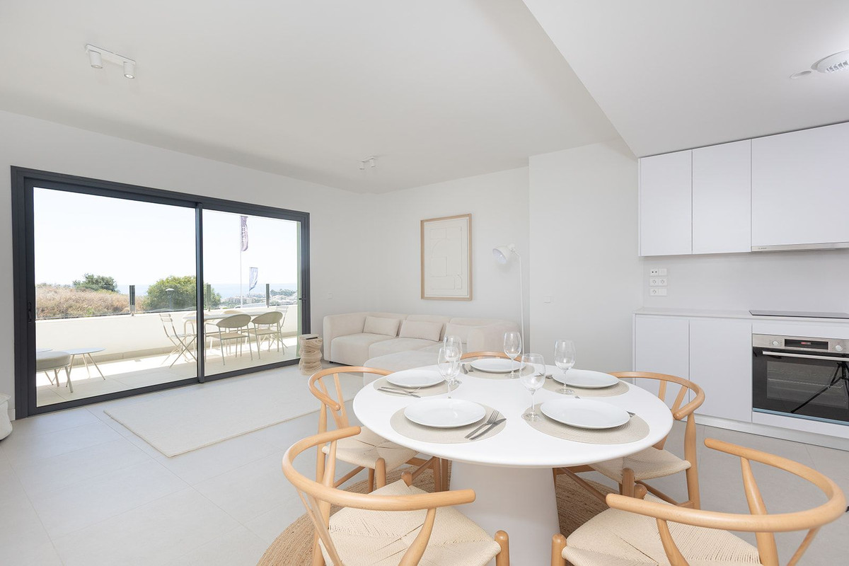 Discover luxury living in this beautifully designed 3-bedroom, 2-bathroom apartment located in the sought-after Ipanema development at Calanova Golf, Mijas. This modern home offers panoramic views of the Mediterranean Sea and the lush fairways of Calanova Golf Course, providing the perfect blend of tranquility and elegance.
