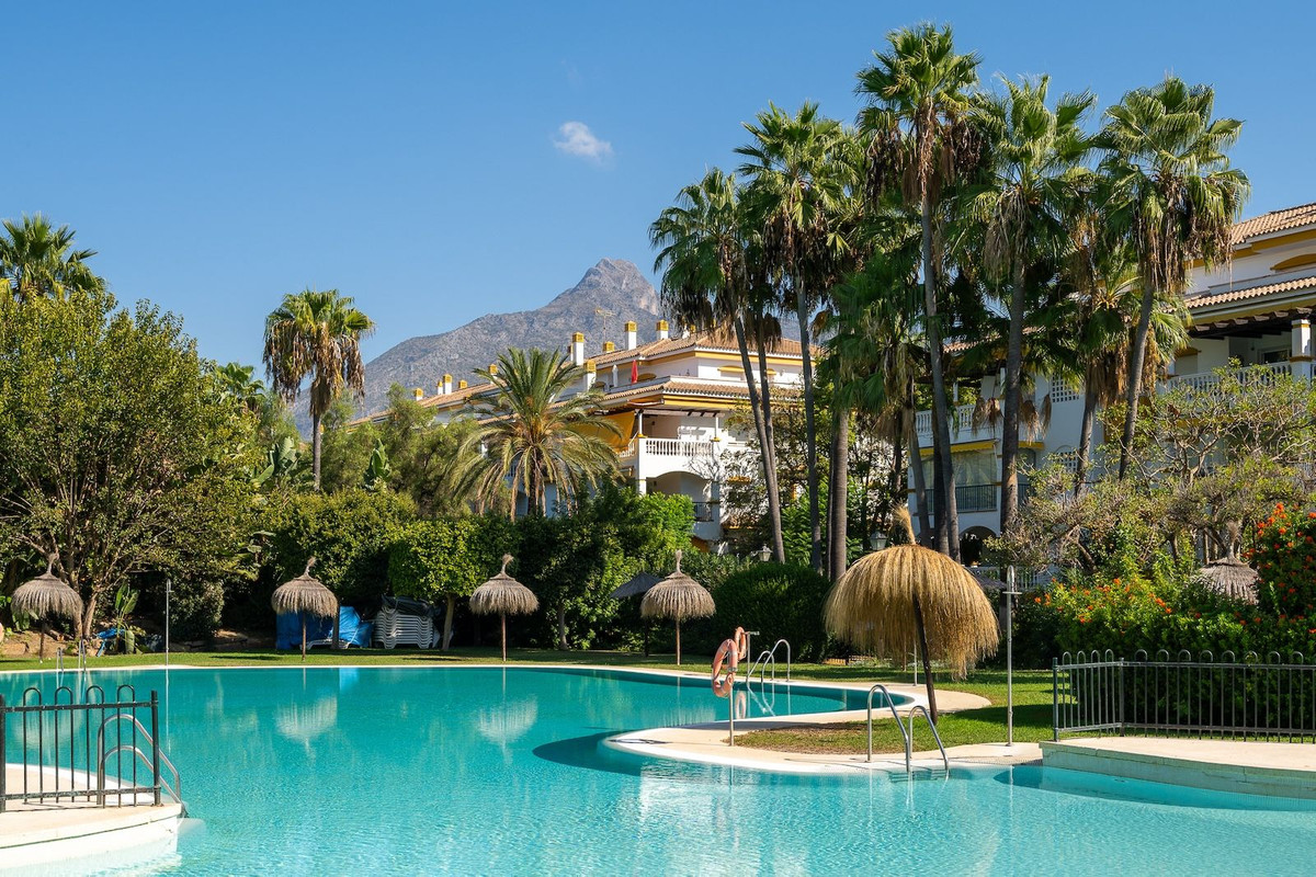 Beliggende i et sikkert kompleks med døgnbevogtning og kun 10 minutters gang fra det livlige Puerto Banús-område, finder du denne smukke stuelejlighed omgivet af 70.000 m² smukt anlagte tropiske haver.