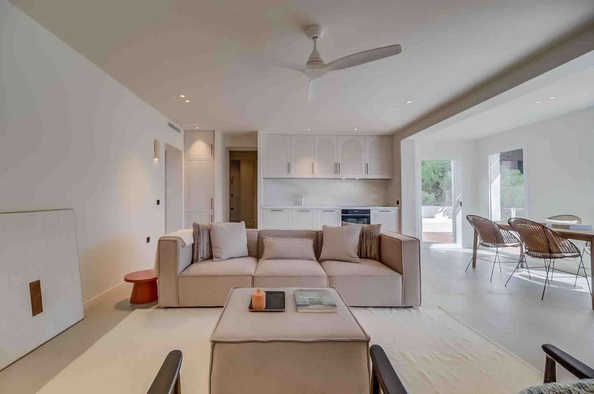 Den rummelige stue og det åbne køkken sætter straks stemningen: lyst, luftigt og designet til en ubesværet hverdag. De store vinduer trækker solen ind og forbinder boligen direkte med den sydvestvendte terrasse – en naturlig forlængelse af stuen, hvor du kan nyde varme eftermiddage, gyldne solnedgange og den milde middelhavsbrise hele året.