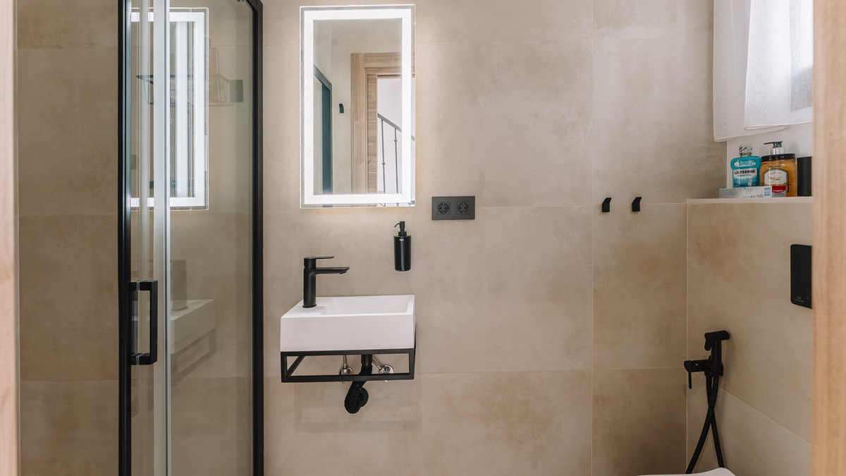 Recently renovated, the townhouse combines traditional Andalusian architectural elements with contemporary interior finishes. The main living level integrates an open-plan kitchen and reception area with floor-to-ceiling sliding glass doors connecting directly to the terrace. The kitchen is equipped with Siemens appliances, and oak flooring runs throughout the principal areas. The layout comprises three bedrooms and three bathrooms distributed across levels to maintain separation between living and sleeping zones. Air conditioning is installed throughout. A private garage with rear storage space is included.