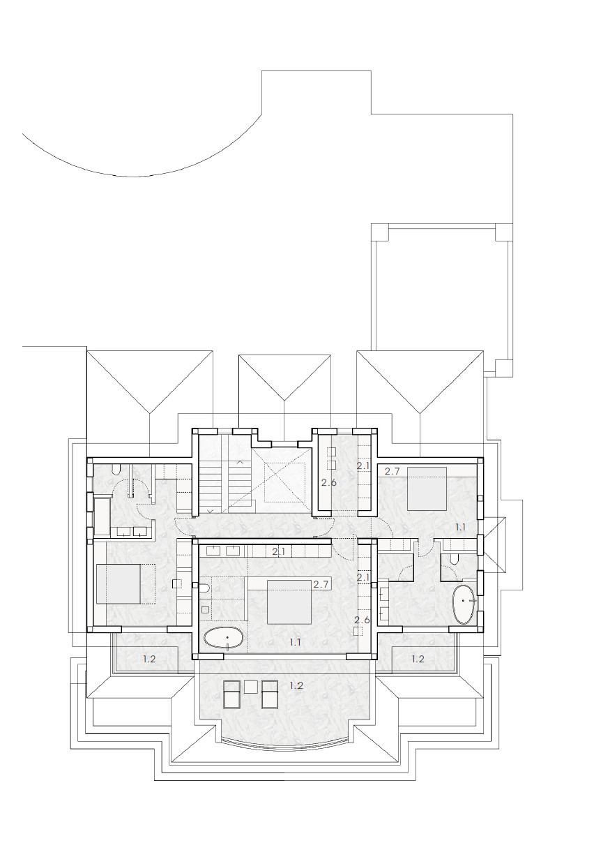 From the hall, a staircase leads to the first floor, where you'll find three beautifully appointed bedrooms, two of which have en-suite bathrooms.
