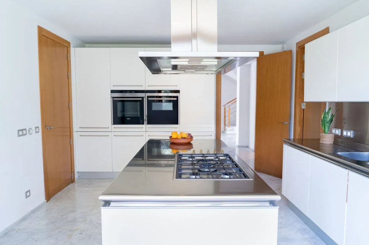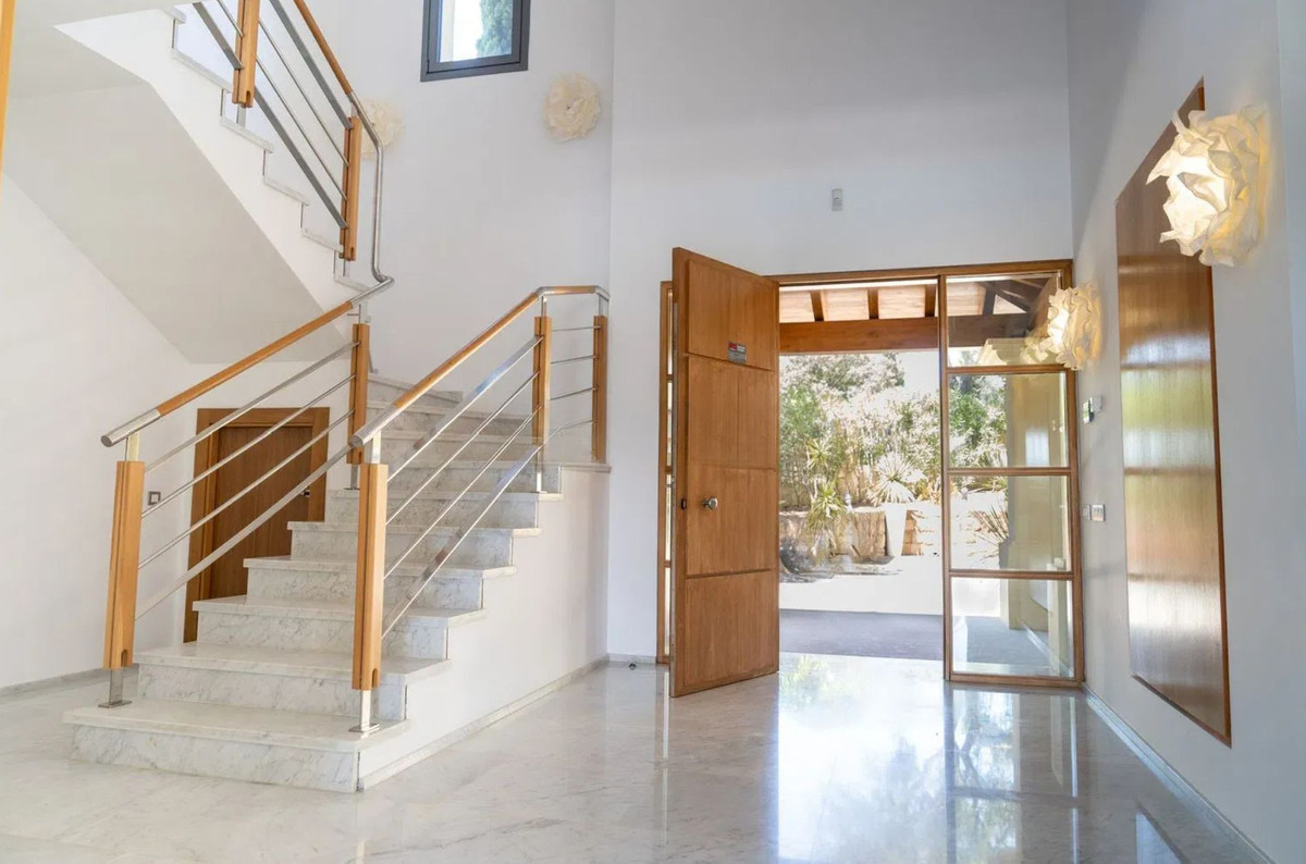 The villa includes a complete renovation and interior design project by the renowned Fran Silvestre Arquitectos. The new layout features a fully renovated kitchen seamlessly integrated with an open-plan dining area overlooking the pool. The living room suite boasts breathtaking panoramic views of the lush garden and surrounding oak forest.