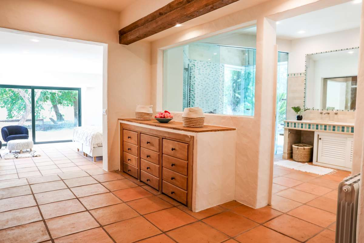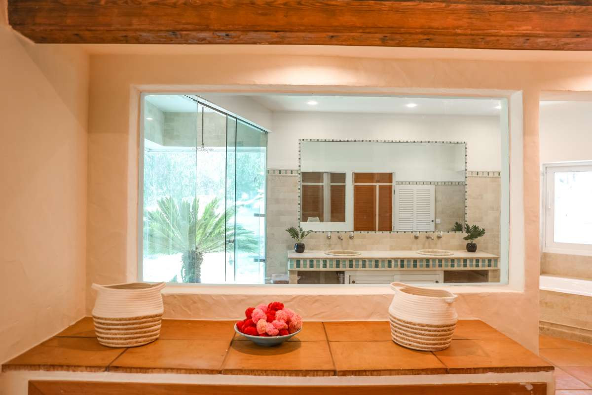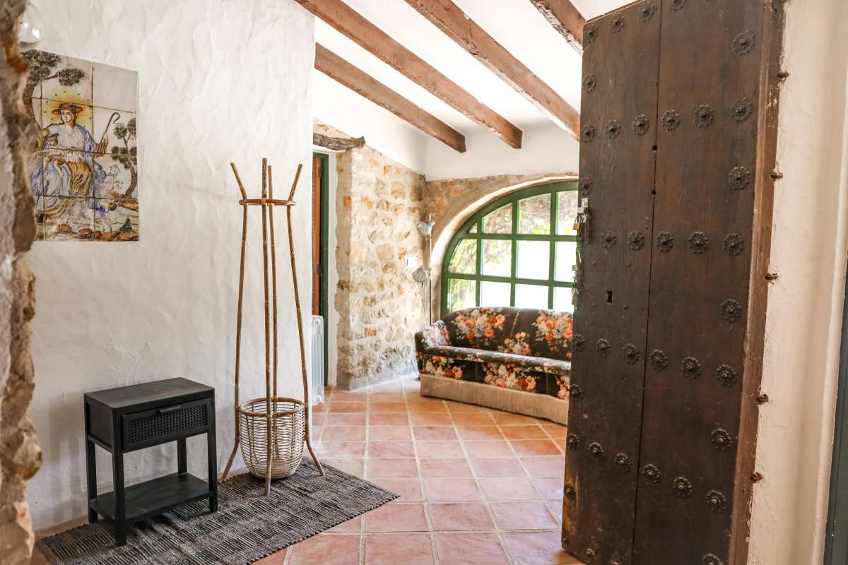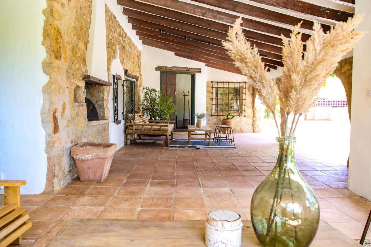 This exquisite luxury finca for sale in Senija offers a serene escape, perfectly blending beautiful tranquility with authentic finca style. Located within walking distance of the village center and Benissa, it is set on a sprawling 18,500 m² plot that invites privacy and peaceful living.As you enter, a charming driveway leads to a spacious parking area. The property features a main house and a guest house, both elegantly renovated to showcase modern comforts while retaining their original charm. The main house boasts multiple inviting living areas, a large separate kitchen, and a generous riu rau with comfortable seating, perfect for enjoying leisurely afternoons.The master bedroom is a true retreat, complete with an en-suite bathroom and a dressing room, while two additional double bedrooms, a full bathroom, and a guest toilet provide ample accommodation. All main rooms seamlessly connect to the outdoors, enhancing the sense of tranquility.Step outside to discover a private swimming pool accompanied by a summer kitchen, all surrounded by stunning countryside views that create a picturesque backdrop for relaxation. Various seating areas throughout the finca allow you to bask in the pleasant weather and embrace the peaceful atmosphere.An additional wooden guest house features a small kitchen and en-suite bathroom, equipped with air conditioning for added comfort. For horse lovers, the finca offers five stables, making it an ideal sanctuary for equestrian enthusiasts.With central heating, double glazing, and an alarm system, this finca combines modern amenities with the allure of authentic rural living, ensuring both comfort and privacy in a breathtaking setting.