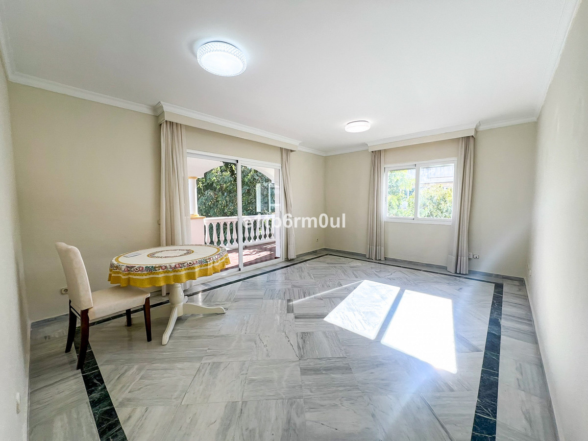 MARBELLA GOLDEN MILE • WEST FACING • WITHIN WALKING DISTANCE TO THE BEACH AND ALL AMENITIES • Superb well-situated West-facing two bedroom apartment on the desirable Marbella's Golden Mile, within walking distance to the beach and an array of amenities such as supermarkets, restaurants, shops and transports facilities. The fully gated complex offers well-maintained tropical gardens, large swimming pool, paddle court and lifeguard during the summertime. The bright apartment comprises: entrance hall with cloak room, living/dining room with access to the afternoon sun terrace, master bedroom en suite, guest bedroom, separate bathroom and a fully fitted kitchen with adjoined utility room. Features include: an underground car parking space, A/C H+C, marble floors throughout. Perfect as a holiday home, permanent residence or investment, in a quiet complex without road noise and yet, close to the buzz of Marbella's beaches along the Golden Mile. Sold fully furnished.