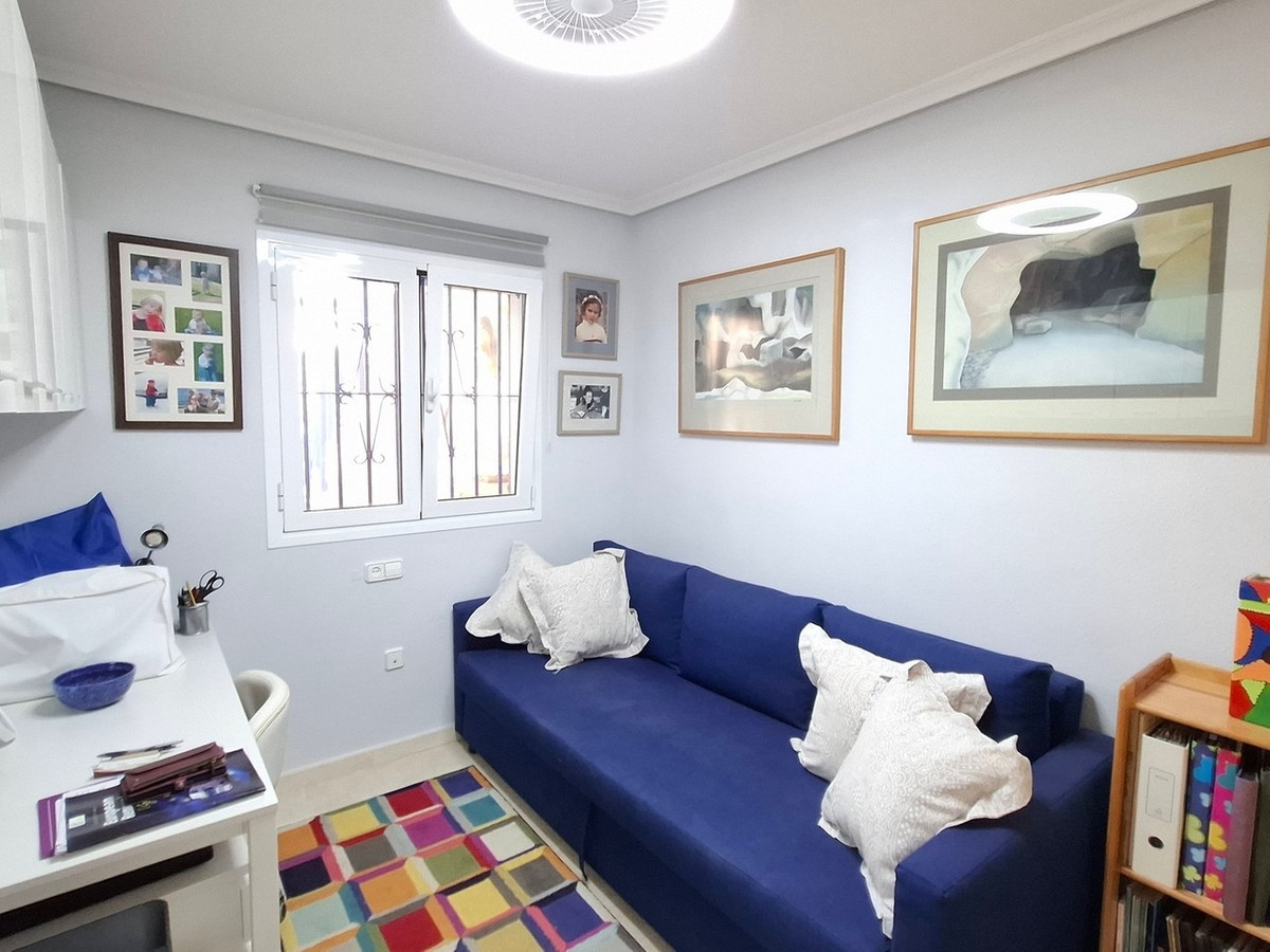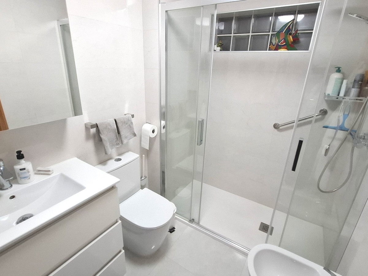 Both bedrooms are good-sized doubles with built-in wardrobes. The principal bedroom benefits from its own set of double glass doors leading out to the main terrace, where a private jacuzzi awaits.