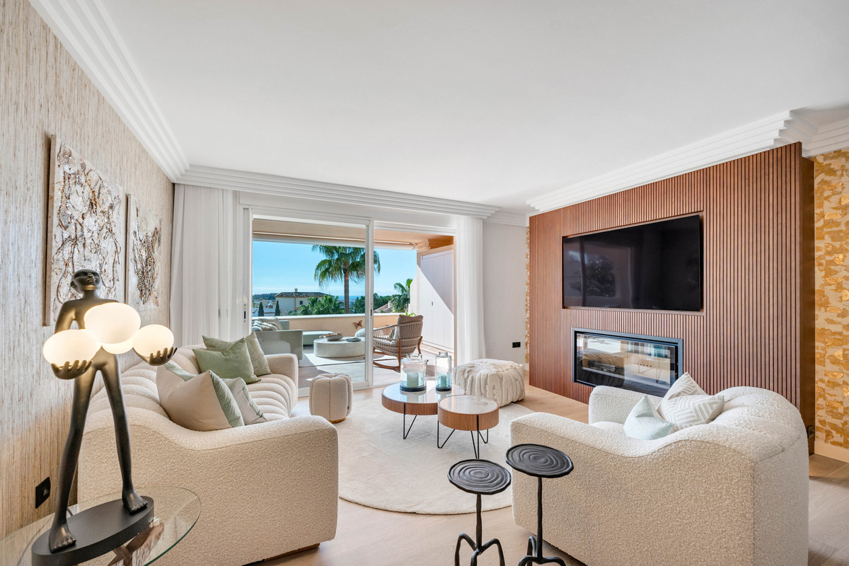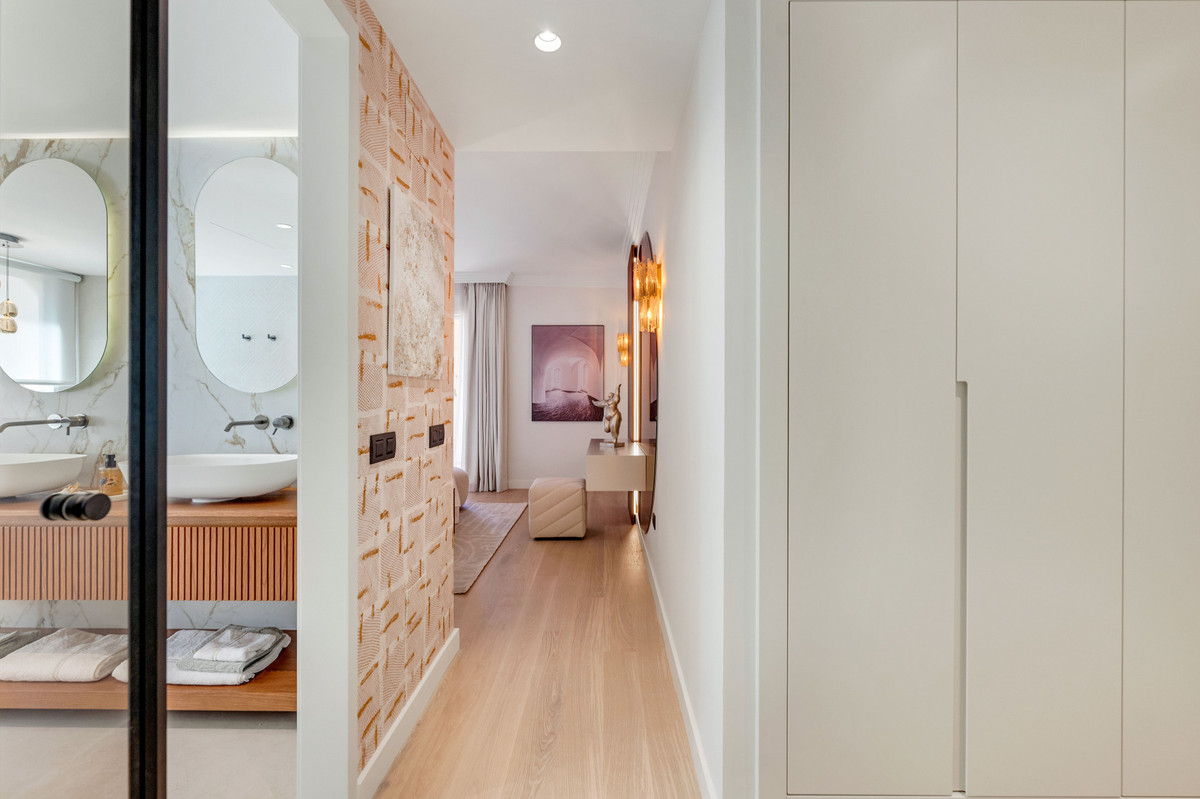 The wrap around terrace itself is a standout feature: perfect for al fresco dining, relaxing, and enjoying a charming additional sitting niche all while taking in breathtaking panoramic views across Las Brisas and Los Naranjos golf courses, the Mediterranean Sea, Gibraltar, and even the distant Atlas Mountains of Africa.