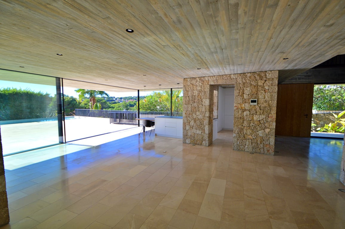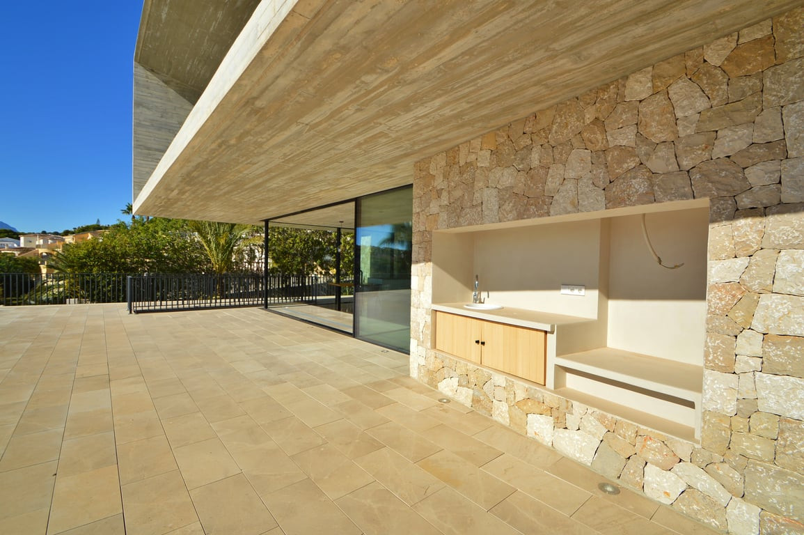 h3><strong>Modern Minimalist Luxury Villa with Sea Views – Moraira </strong></h3><p></p><p>Discover the epitome of modern Mediterranean luxury in this stunning minimalist villa, built in 2019 and designed for those who appreciate clean lines, high-quality finishes, and effortless indoor–outdoor living. Located just <strong>1.3 km from Moraira town</strong>, this residence blends timeless architecture with contemporary comfort in one of the Costa Blanca's most desirable locations.</p><p></p><h3><strong>A Grand First Impression</strong></h3><p></p><p>The moment you arrive, the villa sets the tone:</p><p>a <strong>majestic entrance door</strong>, an elegant hallway, and a striking <strong>steel-design staircase</strong> that instantly elevates the atmosphere. The ground floor is completely open-plan — <strong>no interior doors</strong>, just seamless flow and abundant natural light.</p><p></p><p>Thanks to expansive <strong>floor-to-ceiling sliding glass doors</strong>, the entire living area opens directly onto the pool terrace, creating the ultimate connection between indoor comfort and outdoor lifestyle.</p><p></p><h3><strong>Sophisticated Open-Plan Living</strong></h3><p></p><p>The main floor features a beautifully designed <strong>open-plan living room and kitchen</strong>, where every detail enhances both style and functionality.</p><p></p><ul><li><p>Contemporary kitchen with <strong>integrated dining table</strong></p></li><li><p>Direct access to the <strong>south-facing terrace</strong></p></li><li><p>Private <strong>swimming pool</strong></p></li><li><p>Fully equipped <strong>exterior kitchen</strong> for al fresco dining</p></li></ul><p></p><p>With its orientation, the villa enjoys sun throughout the day and beautiful <strong>sea views from the first floor</strong>.</p><p></p><h3><strong>Spacious and Bright Sleeping Quarters</strong></h3><p></p><p>Upstairs, the first floor offers <strong>4 bedrooms and 3 bathrooms</strong>, all designed with comfort and elegance in mind. Each bedroom opens onto a terrace, ensuring natural light, privacy, and views — the perfect setting to wake up to each morning.</p><p></p><h3><strong>Versatile Lower Level</strong>\n</h3><p>The basement level adds incredible value and flexibility, featuring:</p><p></p><ul><li><p><strong>Double garage</strong> with electric door</p></li><li><p>A large <strong>multi-use room</strong> — ideal as a teenage retreat, guest suite, gym, office, home cinema, or hobby area</p></li><li><p>Separate guest <strong>toilet</strong></p></li><li><p>Dedicated <strong>utility room</strong></p><p>\n</p></li></ul><p>This level can be easily adapted to suit your lifestyle needs.</p><p></p><h3><strong>Low-Maintenance, Fully Irrigated Garden</strong></h3><p>Set on a <strong>925 m² plot</strong> with <strong>331 m² of usable living space</strong>, the villa is surrounded by a beautifully landscaped <strong>low-maintenance garden</strong> equipped with a full <strong>irrigation system</strong>. It offers total privacy, yet remains close enough to enjoy the vibrant town of Moraira.</p><p></p><h3><strong>A Perfect Blend of Style, Comfort & Location</strong></h3><p>This villa is designed for those who seek modern luxury, open spaces, and easy living just moments from the sea and the charming center of Moraira. With high-end finishes, smart architectural design, and a layout that adapts to every stage of life, it is the perfect home for permanent living, holidays, or investment.</p