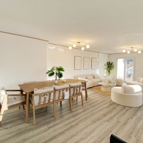 Welcome to this exquisitely renovated 3-bedroom duplex penthouse, a perfect blend of contemporary elegance and coastal-inspired comfort. Completely refurbished to the highest standards, this home showcases oak flooring throughout, including stunning oak wood herringbone details that elevate the ambience with timeless sophistication.