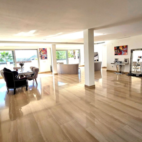 Set within a gated community with 24-hour security, this residence ensures peace of mind and exclusivity. Residents also enjoy access to tennis and paddle courts, adding to the leisure appeal of this sought-after location. With its prime setting, and exceptional amenities, this duplex penthouse presents a rare opportunity to experience elevated living in one of the area's most desirable communities.