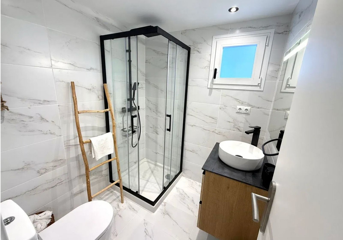 Beachfront property, ideal for seaside holidays ,completely renovated, three bedrooms and one bathroom. Communal pool and gardens. Sold furnished.