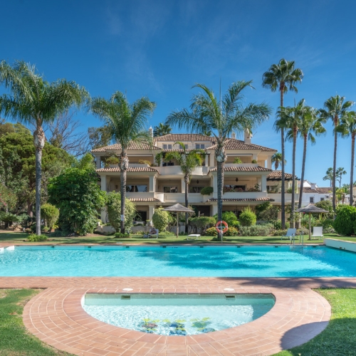 This beautiful corner apartment is nestled among pine trees, offering a truly tranquil setting while being very close to the heart of Nueva Andalucía just minutes from prestigious golf courses, Puerto Banús, and Marbella's top restaurants and boutiques. From the moment you enter, the panoramic views of the Mediterranean Sea and La Concha mountain take center stage, creating an unmatched sense of home. A private path provides direct access to the property, and the fantastic outdoor sheltered spaces allow you to fully enjoy Costa del Sol's weather all year round.