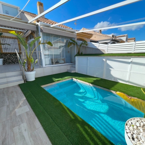 Charming townhouse with veranda and roof terrace Welcome to this wonderful townhouse located in Mil Palmeras - one of the Costa Blanca's most popular resorts. The property has a well-planned living area of 57 sqm and offers a pleasant environment with plenty of space for both relaxation and social moments.