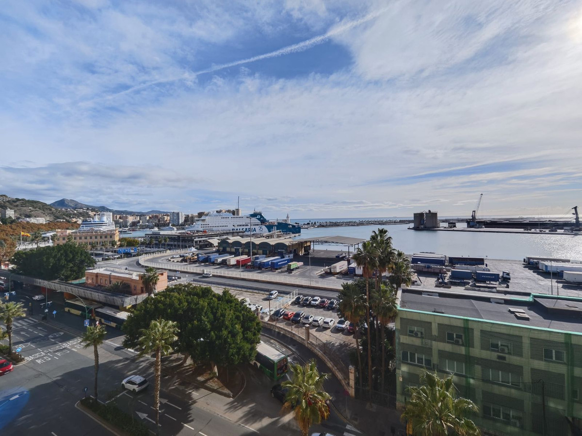 spectacular stately home with large windows and open views of the port of Malaga. Located in one of the prime areas of Malaga, this property stands out for its elegance and enormous potential for renovation. It retains its original charm, with a beautiful hydraulic floor in perfect condition, high ceilings, moldings, large windows and views of the Mediterranean Sea.