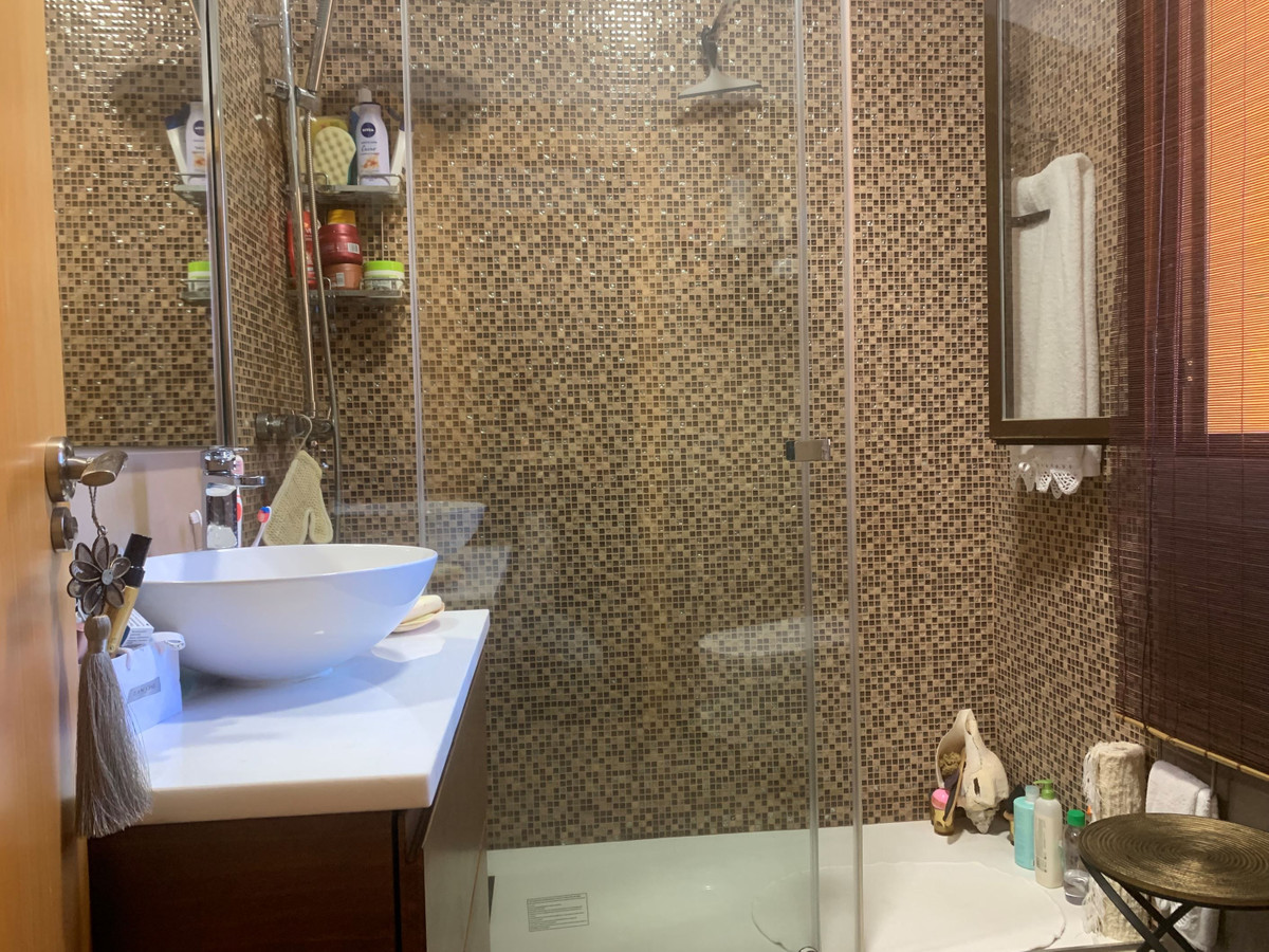 Two fresh bathrooms equipped with toilet, sink and shower.