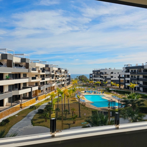 Beachfront everyday luxury - spacious beach apartment With an unbeatable location in the sunny coastal town of Orihuela Costa, you will find this spacious and well-planned apartment - a place where the holiday feeling never has to end. Here you will live comfortably on the second floor of a well-maintained building with a lift, green areas and a communal pool, just minutes from the sparkling Mediterranean Sea.