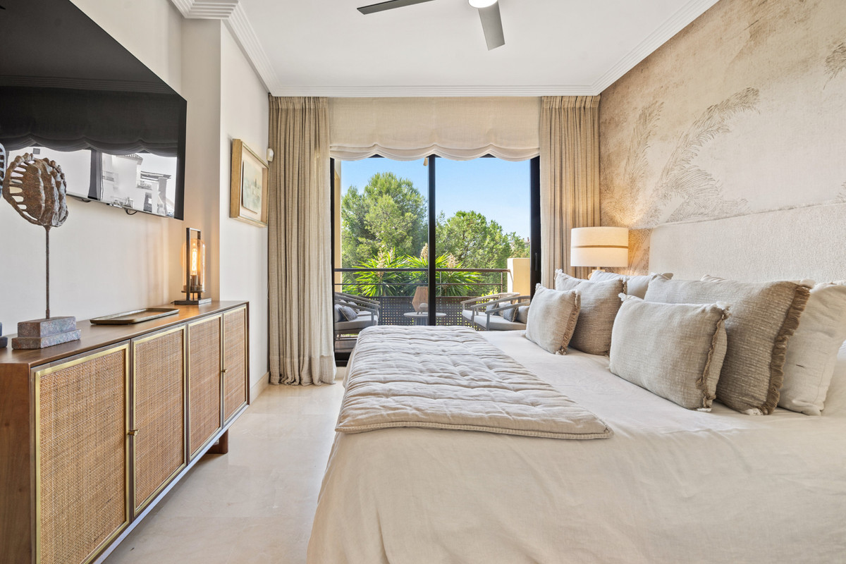 Discover this bright and elegant 3-bedroom, 2-bathroom apartment located in the sought-after Los Pinos community within Los Arqueros Golf & Country Club. Set in a peaceful and secure environment, the property enjoys an elevated position with beautiful views of the gardens and the Mediterranean Sea.