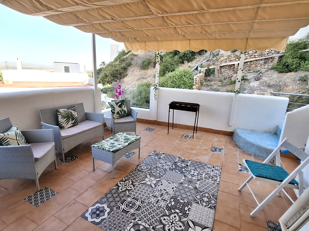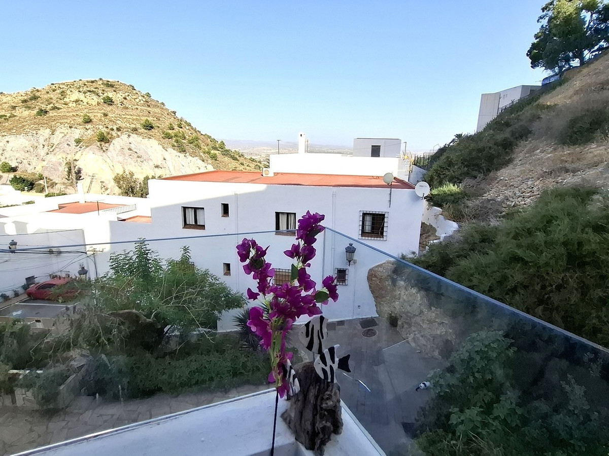 Further stairs lead to the roof terrace, where you have a storage room, which was previously used as a craft room, and you can enjoy panoramic views of both the pueblo and the beautiful landscape, with ample space for outdoor furniture to make the most of this perfect outdoor living space.
