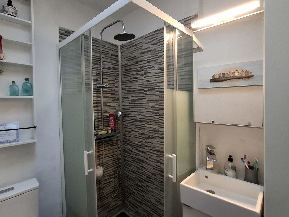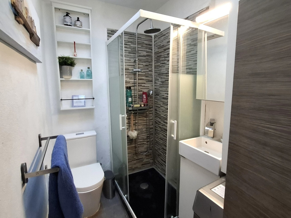There is a bright double bedroom and also a bathroom featuring a walk-in shower.