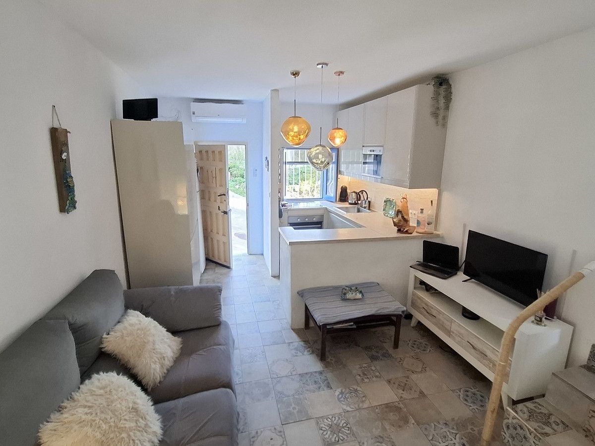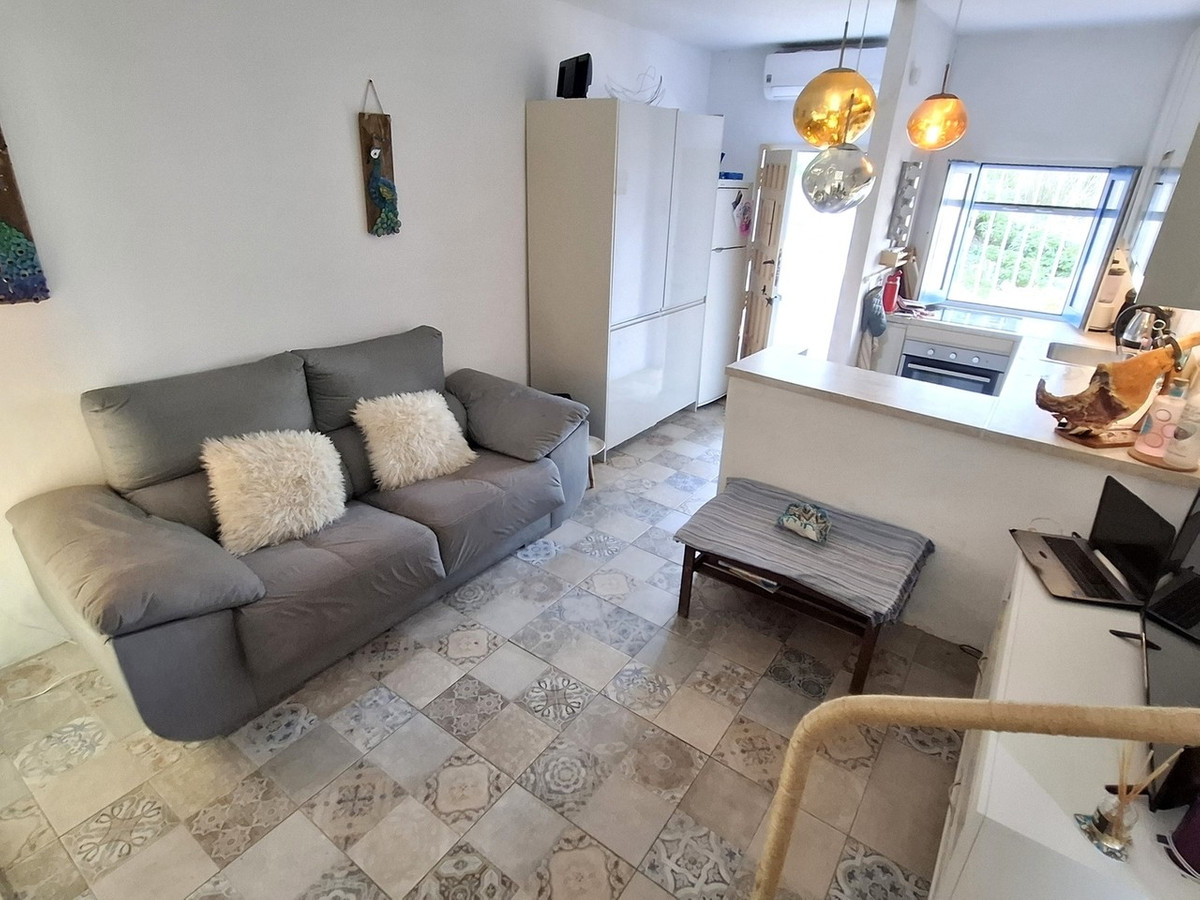 As you enter the upstairs apartment, you’re welcomed into an open-plan kitchen and living area, featuring stunning Andalusian floor tiles that capture the essence of the village. The modern kitchen is fully equipped with white goods and plenty of storage space.