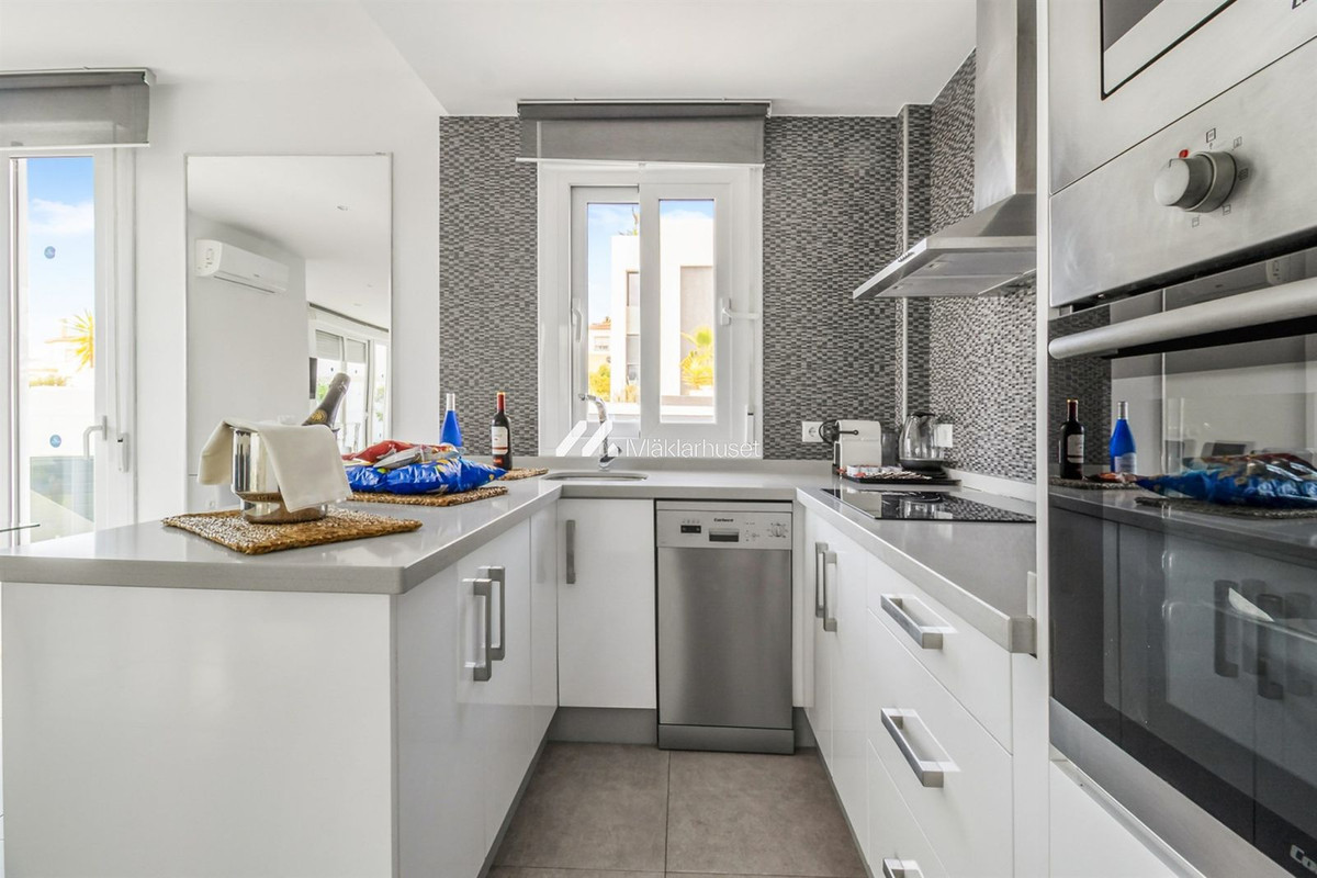 On the upper floor, you'll find three large bedrooms and a stylish bathroom. Two of the bedrooms feature access to private terraces – ideal for morning coffee with a view. At the very top of the home, a spectacular rooftop terrace offers even more space for entertaining and breathtaking panoramic views.