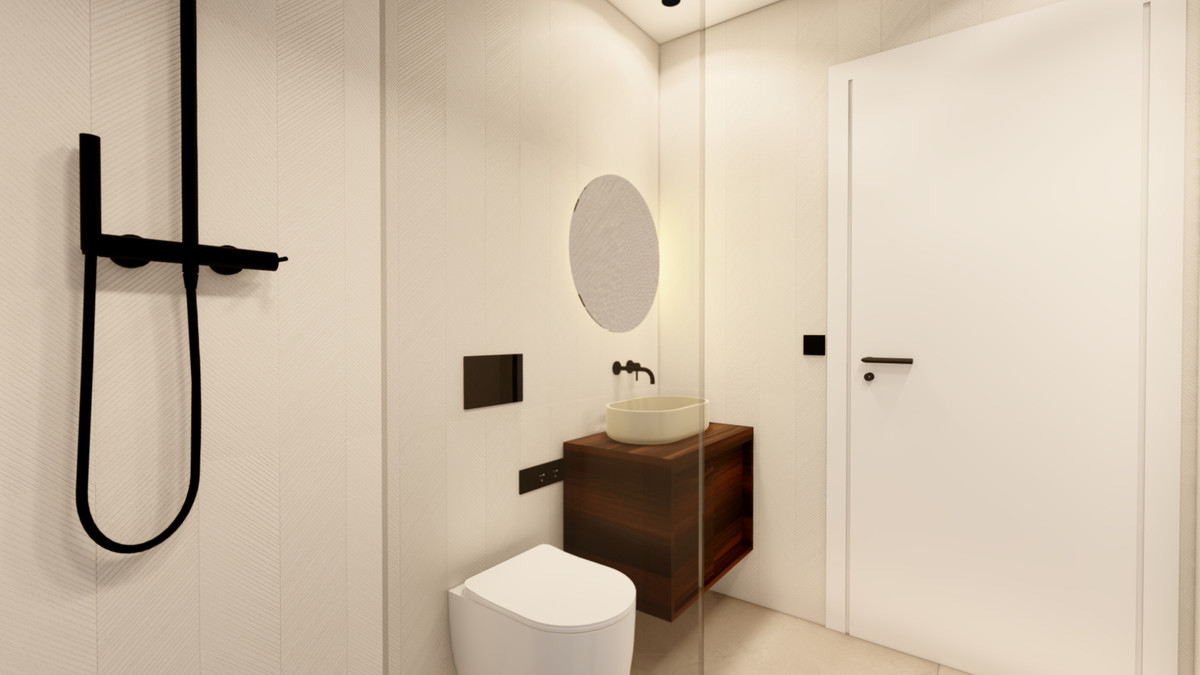 Boligerne er udstyret med essentielle funktioner som forberedelse til aircondition, motoriserede aluminiums-persienner, badeværelsesmøbler med spejle og brusevægge samt et walk-in-closet og indbyggede skabe. Disse detaljer øger komforten og bevarer et moderne og ensartet design gennem hele hjemmet.