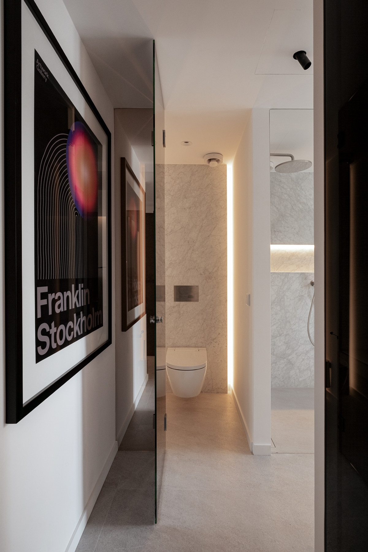 The layout includes three bedrooms with en-suite bathrooms, ensuring comfort and privacy for both residents and guests. A guest toilet, elegant marble floors and a fully equipped Gaggenau kitchen elevate the sense of quality throughout.