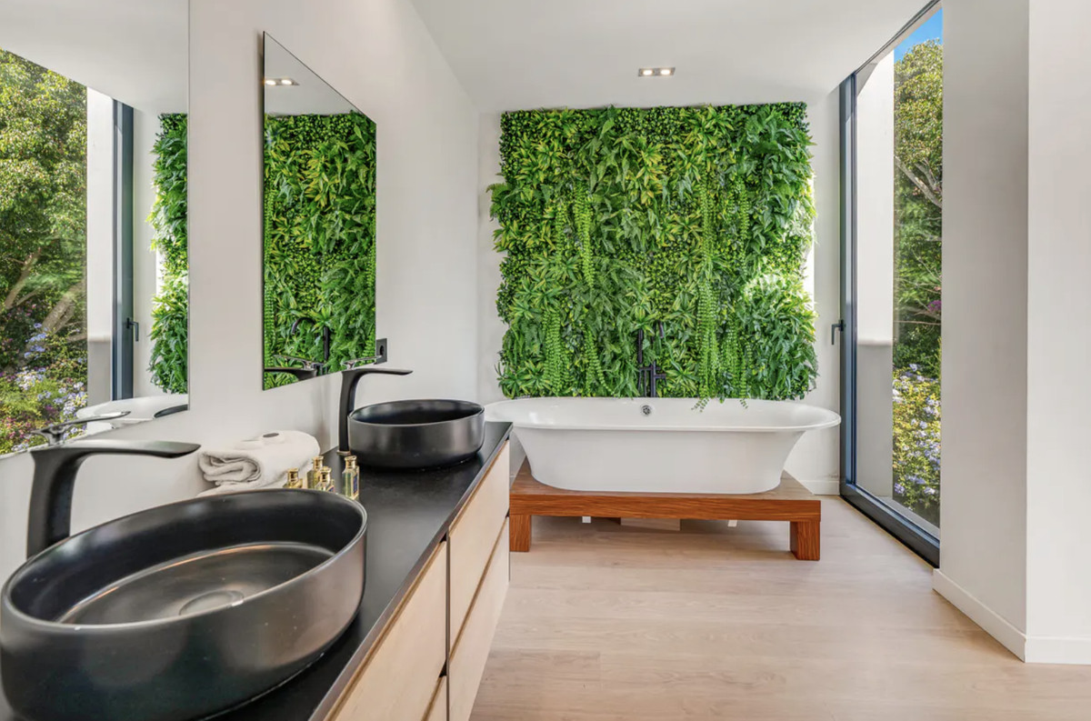 Upstairs are three spacious bedrooms, each with a private bathroom and access to a wide terrace with panoramic sea views. The master suite includes a dressing area and enjoys the best outlook in the house. Every room feels private and comfortable yet remains connected to the outdoors.