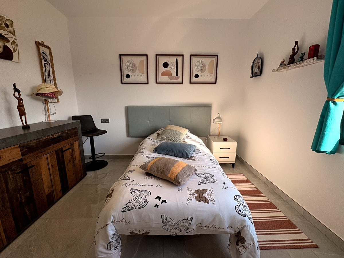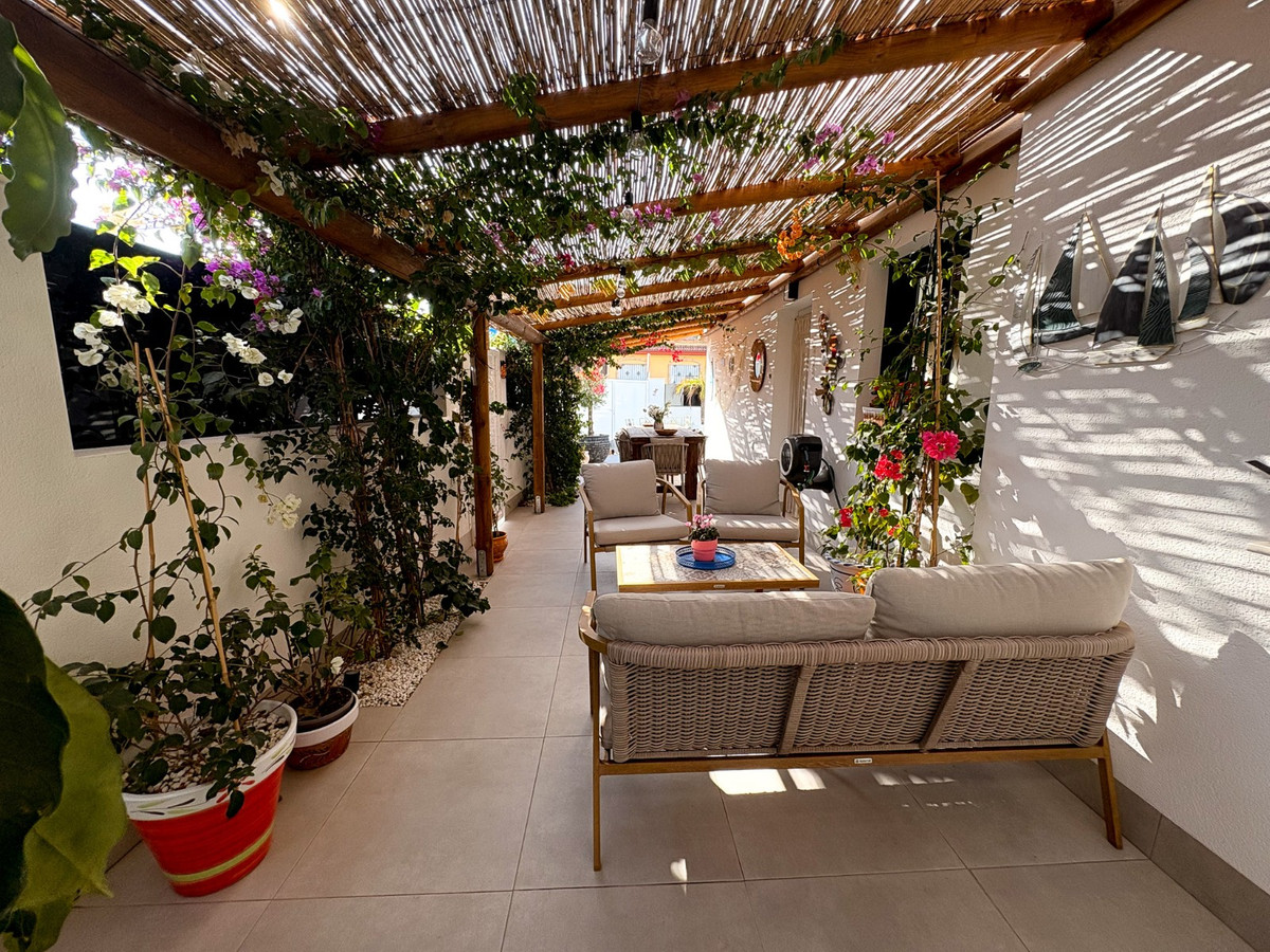 The south-facing orientation provides plenty of natural light throughout the day. The location is very convenient. The sea is 1.5 km away. A bakery and a pharmacy are a seven-minute walk . A hairdresser, a bank, a church, and a large weekly market are all within a ten-minute walk . Supermarkets such as Lidl, Carrefour, and Dia are a ten-minute drive away .\n