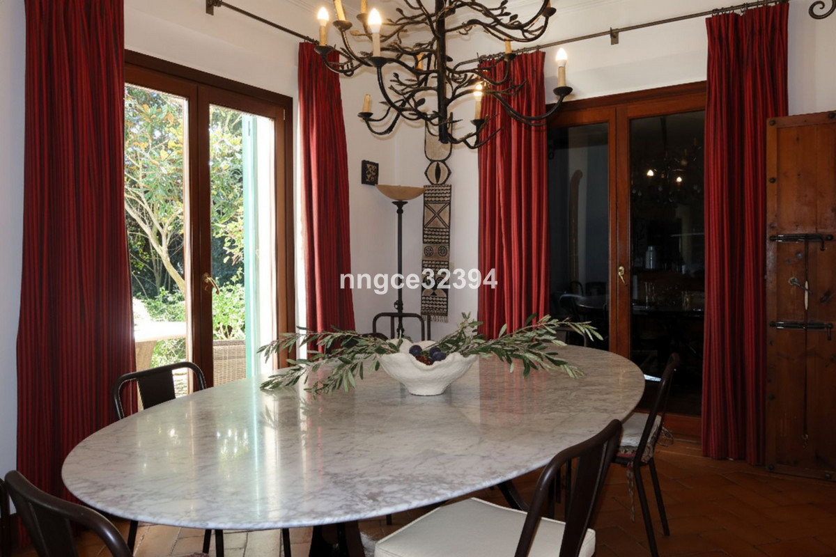Inside, the home unfolds as a grand yet intimate Mediterranean estate, rich in character and authenticity. High ceilings, exposed beams, terracotta floors, and handcrafted woodwork provide a warm architectural canvas, while carefully curated artwork and collected pieces give the home its unmistakable identity — elegant, intellectual, and deeply personal.