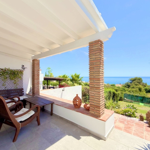 Beachfront complex in Estepona, New Golden Mile, between Cancelada and Selwo, close to Las Dunas. Stunning fully renovated corner semi-detached townhouse, located in a frontline beach complex with a unique charm, reminiscent of an authentic fishing village, full of character and tradition. The location is exceptional: just 50 metres from the promenade and the beach, 5 minutes from Estepona town centre and 10 minutes from Puerto Banús. A peaceful setting where the sound of the waves accompanies everyday life. An excellent beach restaurant is also located only 50 metres away. The property was completely renovated in 2003 in an elegant Spanish–Scandinavian style. The terraces benefit from enhanced insulation and are fitted with new double-glazed windows in Brazilian hardwood. Central gas heating with a gas fireplace. The house offers 3 bedrooms and 3 bathrooms, including one bedroom and one bathroom on the ground floor, a large fully fitted kitchen, a comfortable living room and a beautiful patio, ideal for entertaining. The property also includes four storage rooms. On the upper floor, there are two double bedrooms with en-suite bathrooms, as well as a magnificent rooftop terrace offering a high level of privacy and breathtaking panoramic sea views. A newly developed promenade and a nearby bus stop provide easy access, making a car not essential. Viewings are highly recommended.