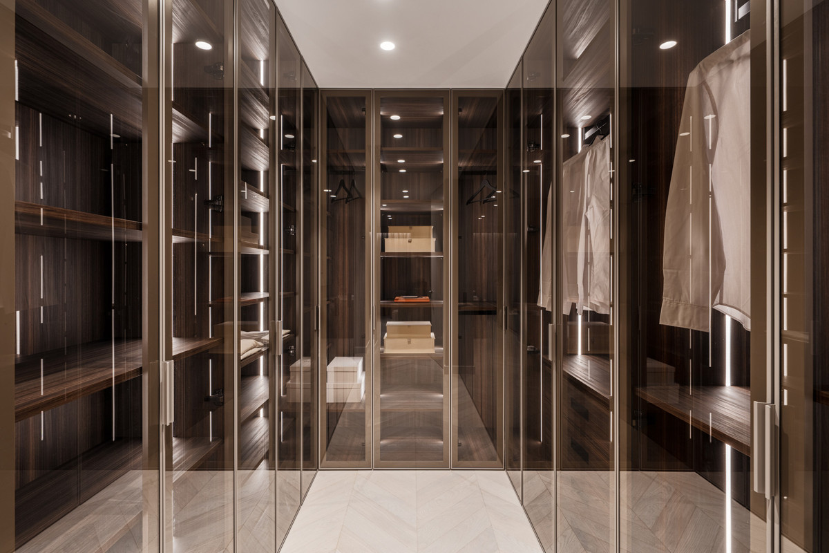 The bespoke kitchen is fitted with premium materials and state-of-the-art Gaggenau appliances, flowing seamlessly into the bright open-plan living and dining area. Natural oak flooring, custom detailing, and designer furnishings from the Alexandra Collection create a warm, refined aesthetic. A full smart-home system offers remote control of lighting, climate, and security.