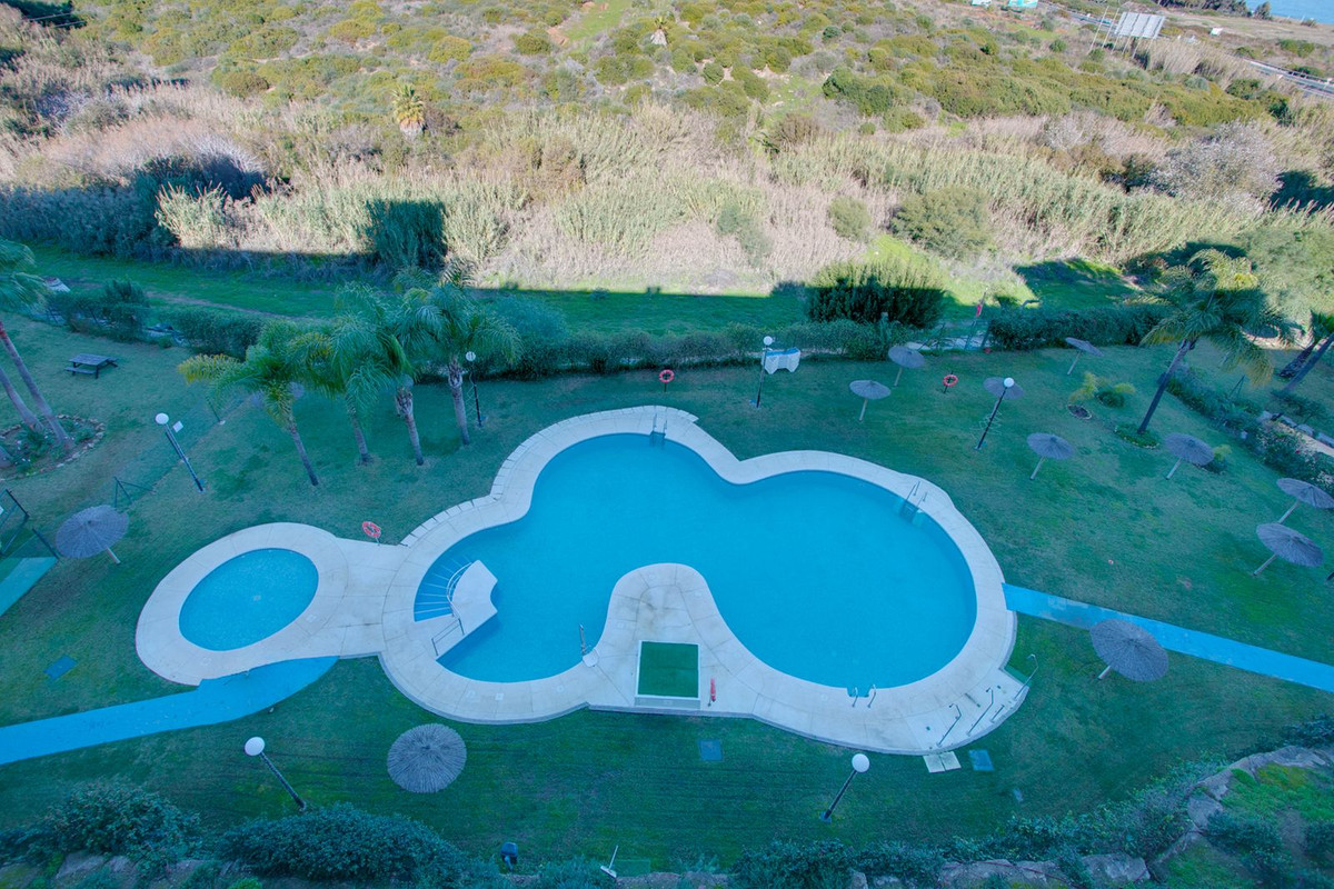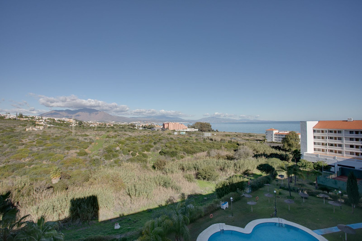 Lejligheden har et bebygget areal på 128 m², en overdækket terrasse på 11 m² og en 21 m² stor solterrasse med en fantastisk udsigt over Middelhavet og Gibraltarklippen. I underetagen er der to soveværelser med indbyggede skabe, et renoveret badeværelse, et gæstetoilet og et helt nyt fuldt udstyret køkken, der åbner ud til en lys opholdsstue med direkte adgang til terrassen. Ovenpå er det tredje soveværelse med eget badeværelse og direkte adgang til solterrassen.