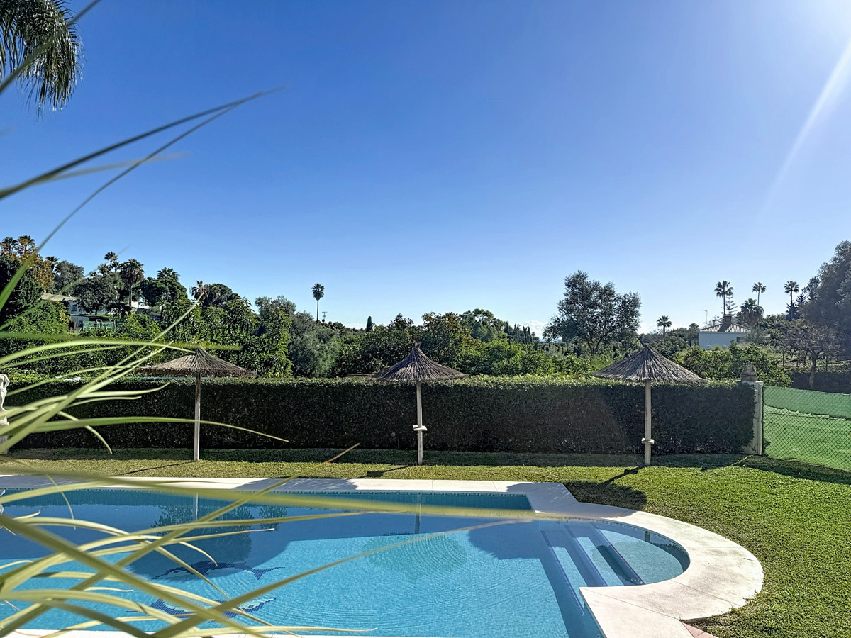 An attractive country house is presented, located in La Alberdina, in the eastern area of Estepona, Málaga. It stands out for its large plot of 4,877 m² with fruit trees in production and a private pool, offering a natural and tranquil environment just minutes from the beach, shops, and restaurants. The property features 253 m² built, of which 167 m² correspond to the interior of the main house, complemented by a 47 m² terrace and a private garage for 2 cars.