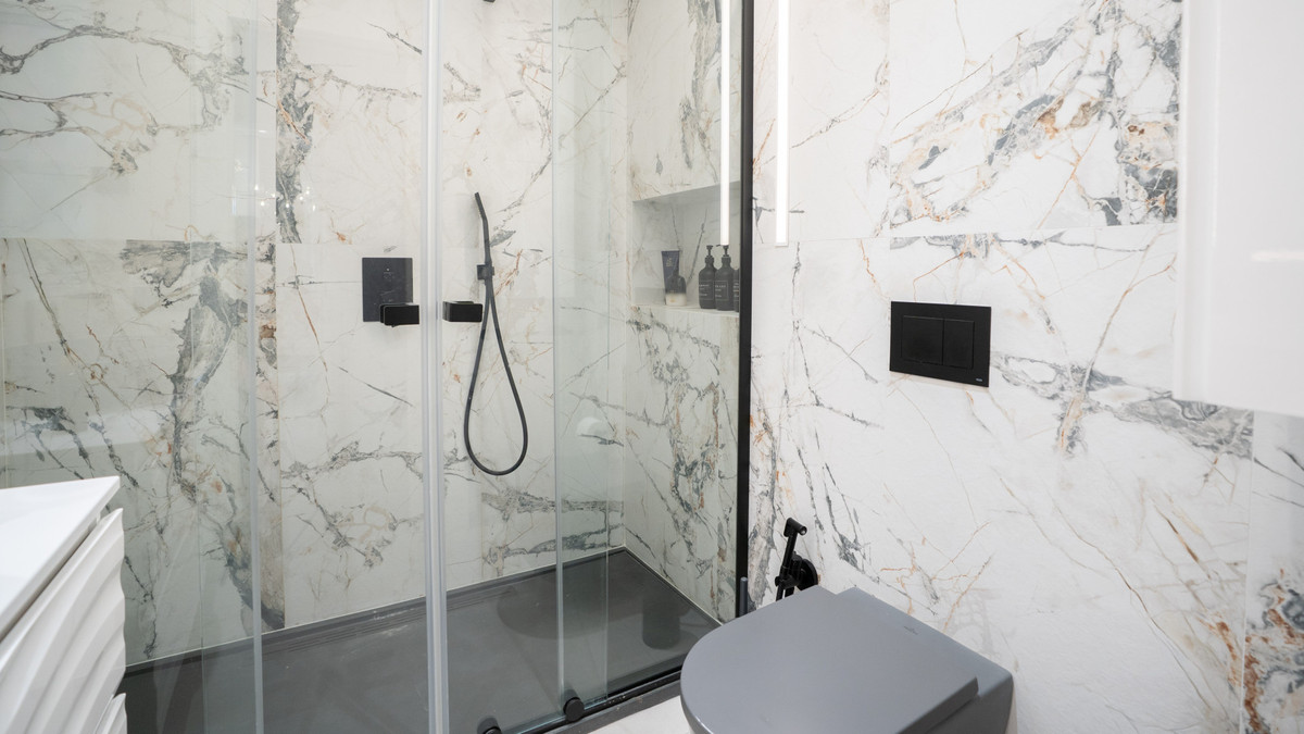 The apartment comprises two spacious bedrooms and three modern bathrooms, all finished to the highest standards. The interior spans 155m², complemented by a remarkable 96m² terrace, providing ample space for relaxation and entertaining. The living room is bright and airy, seamlessly connecting to the private terrace, and features double glazing and fitted wardrobes for added comfort and practicality. The property has been recently renovated and is presented in excellent condition, reflecting a commitment to quality and style.
