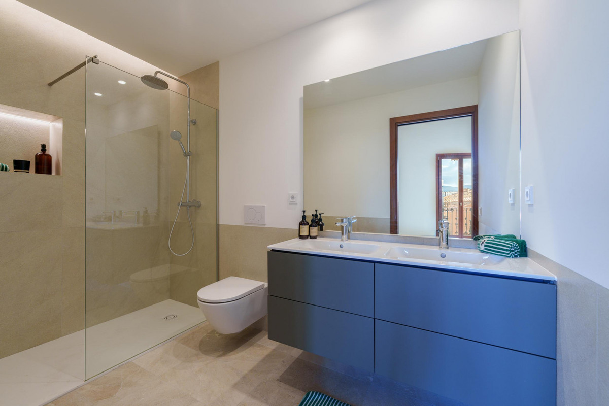The penthouse has been recently renovated with great attention to detail, seamlessly combining contemporary design with the character of a traditional Mallorcan building. The main living level features a bright and open living and dining area with an integrated kitchen and charming views towards Santa Eulalia. The layout includes two generous double bedrooms, a single bedroom, two bathrooms — one en suite — and a convenient storage room with a laundry area.