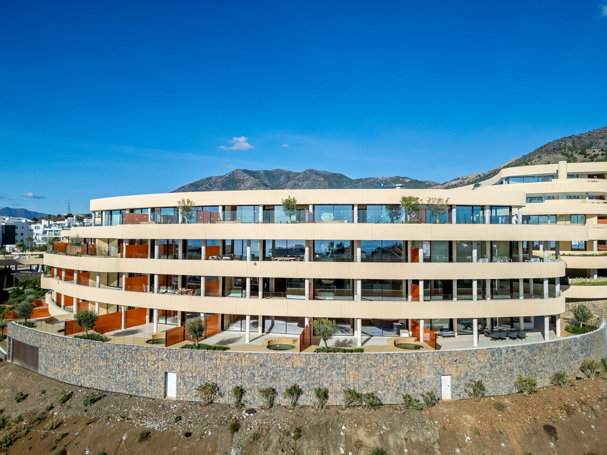 Brand new luxury south east facing apartment, located in the exclusive urbanization of Higuerón, with 2 bedrooms, 2 bathrooms, spacious living-dining room, open plan kitchen fully furnished and equipped with electricial appliances from Bosch, laundry area with washing machine/dryer, large terrace of 40m2 with beautiful sea views.