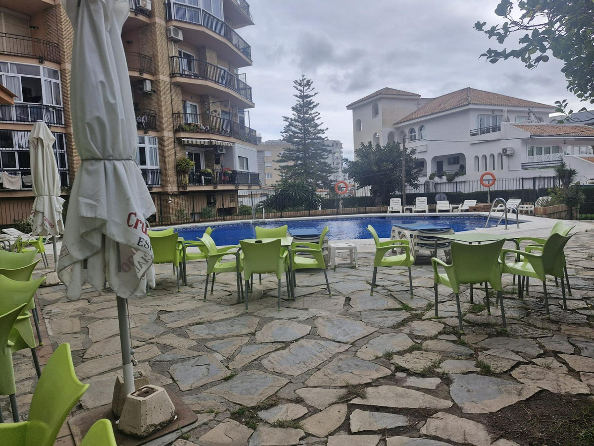For sale is a 40 square meter studio apartment located on the fifth floor of a building with an elevator, within a gated residential complex that features a communal swimming pool and gardens, in one of the most popular and touristic areas of the Costa del Sol. The property is exterior, in good condition, and includes built in wardrobes and a full bathroom, with a practical layout that makes the most of the available space.