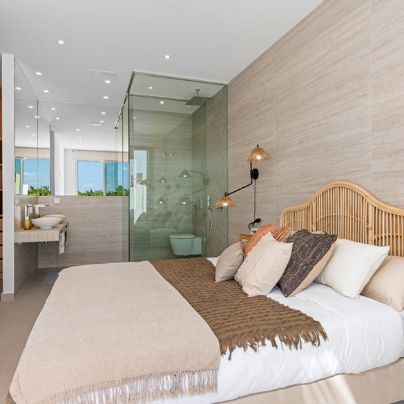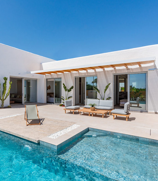 Boligområdet består af 6 rækkehuse i ibiza-stil på selvstændige grunde med terrasse, loungeområde, parkering og privat pool. Boligerne har stue/spisestue, et fuldt udstyret køkken, 3 soveværelser, 2 badeværelser, et viktualierum og en tagterrasse (solarium) med privilegeret udsigt. Alle er omhyggeligt designet med materialer i høj kvalitet for at imødekomme selv de mest krævende kunder.
