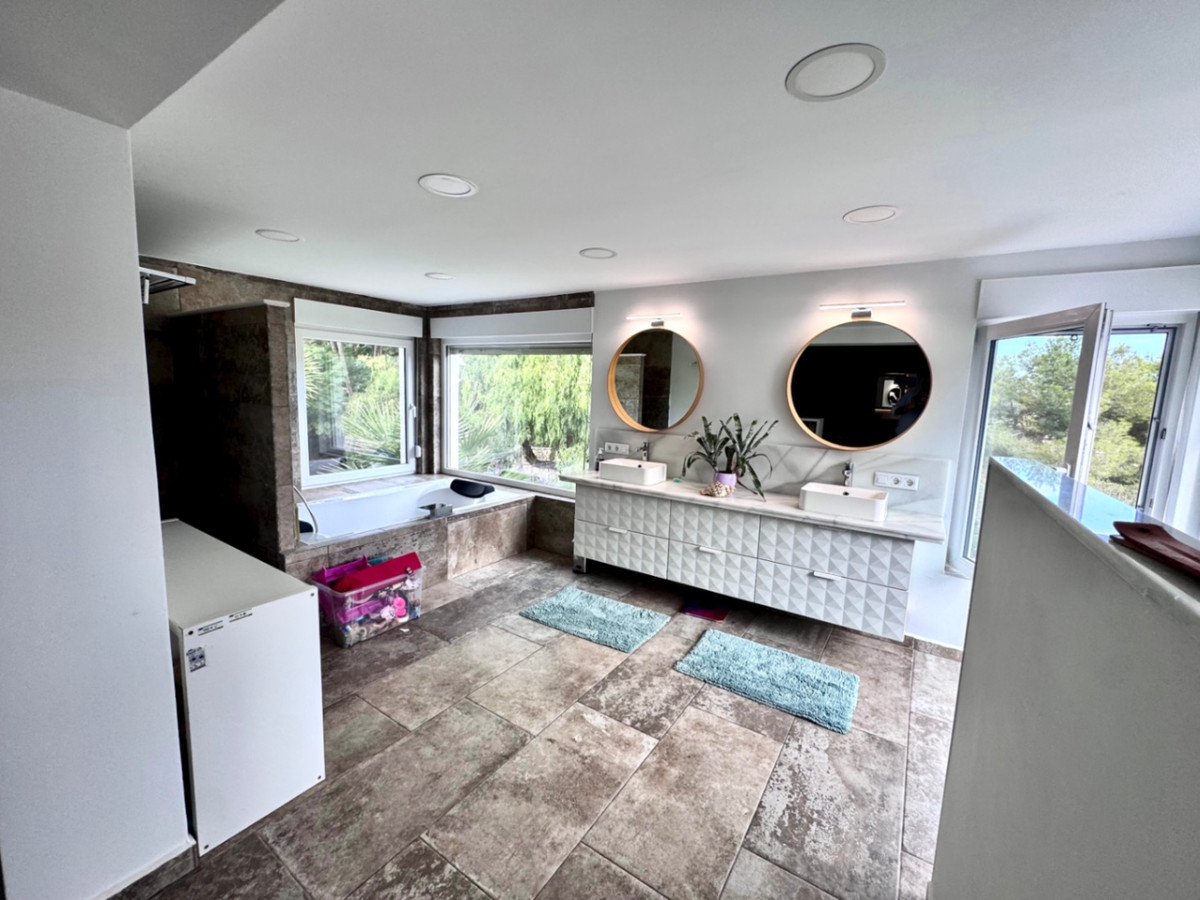 Discover your dream retreat in this charming 5-bedroom villa in Javea, Costa Blanca, with the potential to expand to 7 bedrooms! Recently refurbished in 2018, this two-story home features a spacious independent kitchen, perfect for culinary enthusiasts with direct access to the inviting pool terrace, perfect for entertaining. The expansive living and dining room complete with air conditioning, seamlessly connects to a sun-drenched pool terrace, ideal for entertaining or relaxing. Retreat to the luxurious master bedroom, complete with a cozy fireplace, ensuite bathroom, and a generous walk-in wardrobe. Additional highlights include a double bedroom with its own ensuite, walk-in wardrobe and a lovely glazed-in naya, a comfortable double bedroom, and a guest bathroom with a shower for convenience. The lower floor offers a versatile double bedroom, a bathroom with a shower, a storage room, and a cozy lounge area, with direct access to the lush green garden; providing ample space for guests or family gatherings. This home is designed for both comfort and style, making it a perfect choice for modern living.