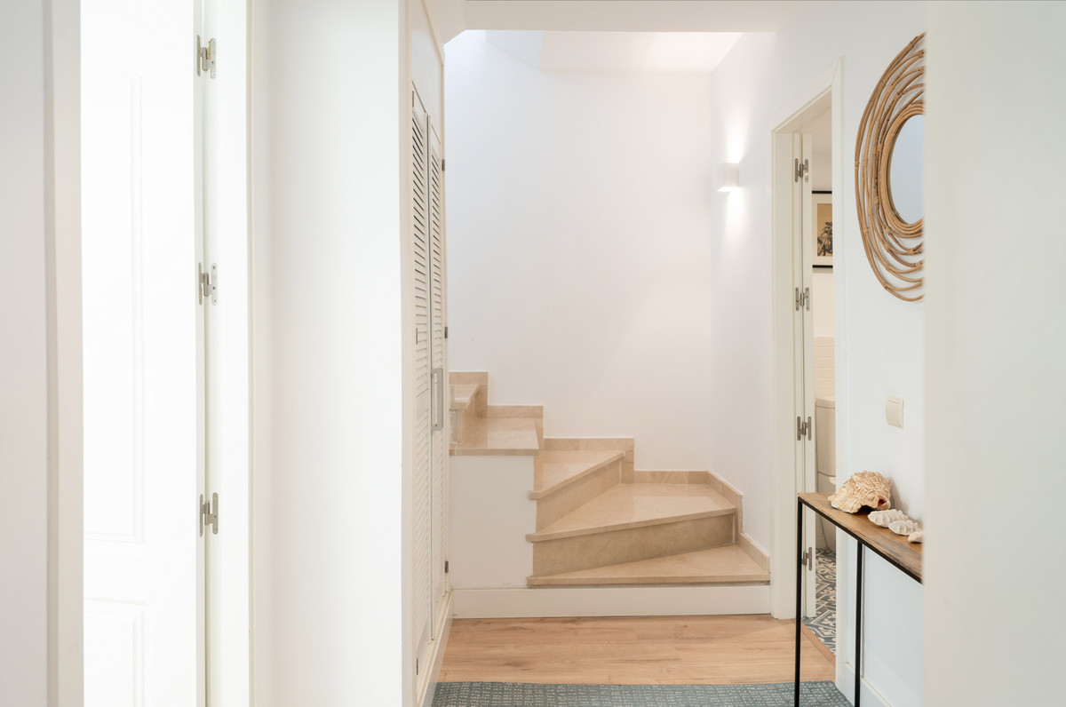 Upstairs, the property features three spacious bedrooms with direct balcony access, including a master suite with a private terrace and peaceful views over the surrounding hills.