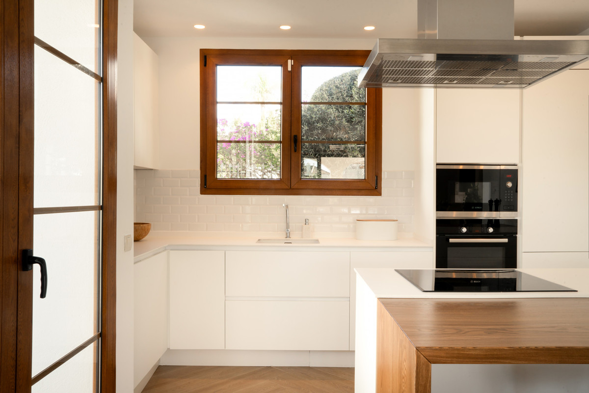 The villa offers 295 m² of bright interior space on a 515 m² private plot with a stylish open-plan living room, dining area and fully fitted modern kitchen, all flooded with natural light and opening directly onto a large sunny terrace with private swimming pool, landscaped garden and outdoor dining and lounge areas—ideal for entertaining and enjoying the Costa del Sol climate.