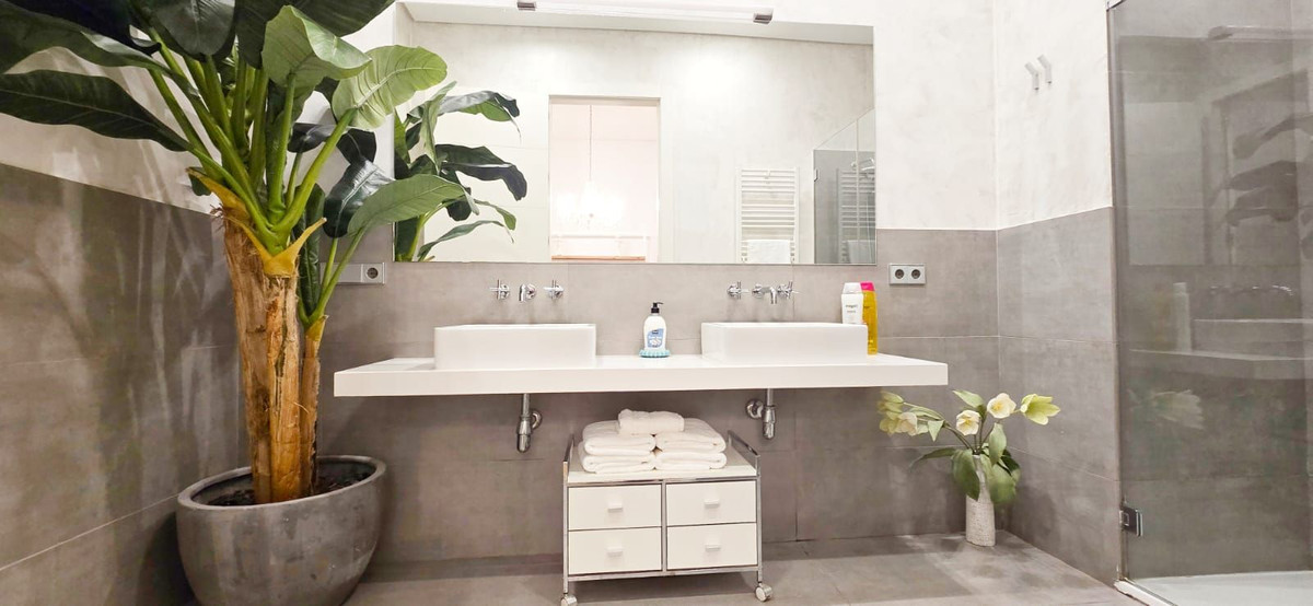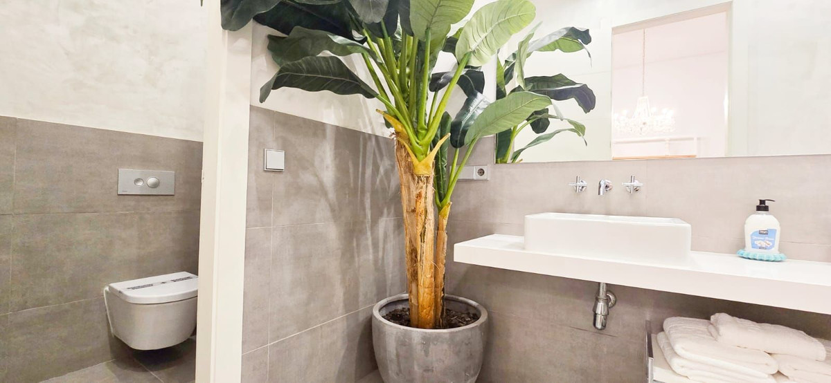 Boligen har et rummeligt badeværelse med bruseniche, gulve i træ og porcelæn/keramik, centraliseret aircondition samt et komplet udvalg af hvidevarer. Der mangler ikke en detalje.