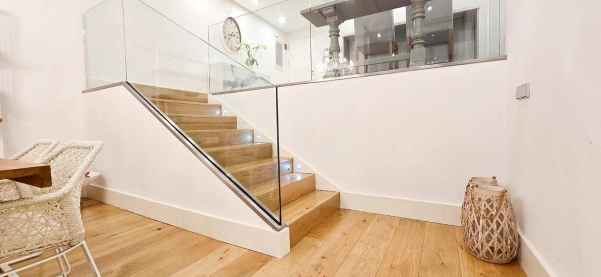 Med over 140 m² byder boligen på et avantgardistisk og moderne design: stort køkken, stue/spisestue i to niveauer, højt til loftet, store vinduer med fuld lydisolering og et helt glasinddækket soveværelse, der tilfører karakter og lys uden at gå på kompromis med privatlivet.